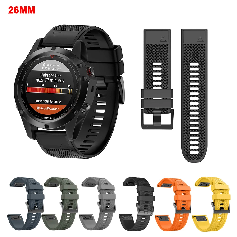 Оригинальный силиконовый ремешок дляFenix 6XFenix 6X ProFenix 5X Fenix 5X Plus, легко подходит для 26 мм, Мягкий силикон Garmin Fenix 5X 26 мм
