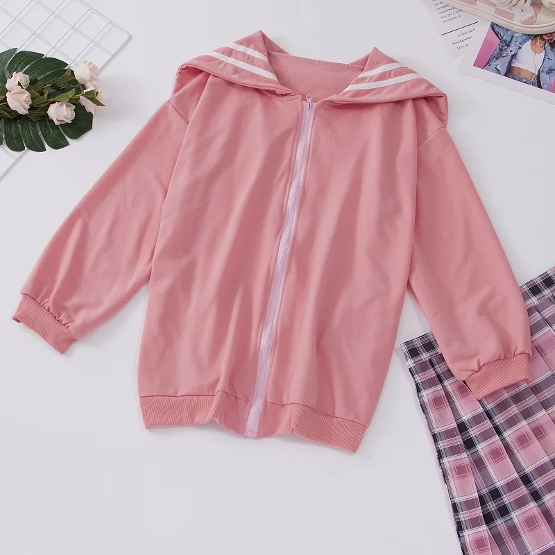Кавайная толстовка на молнии, свитшот с матросским воротником в японском стиле, милые топы с длинным рукавом для подростков, 2022, мягкая кофта JK розового, темно-синего цвета для девочек, Kpop