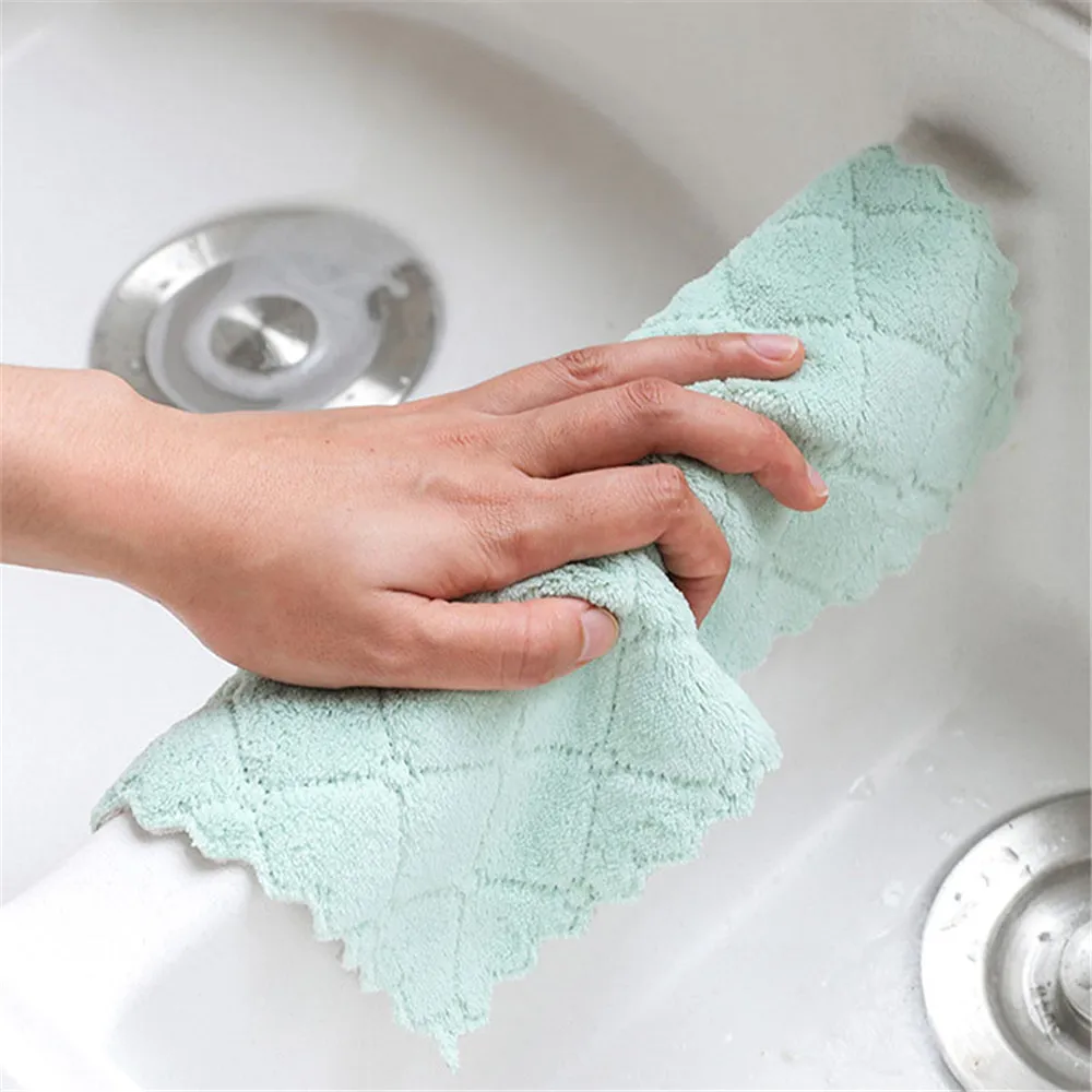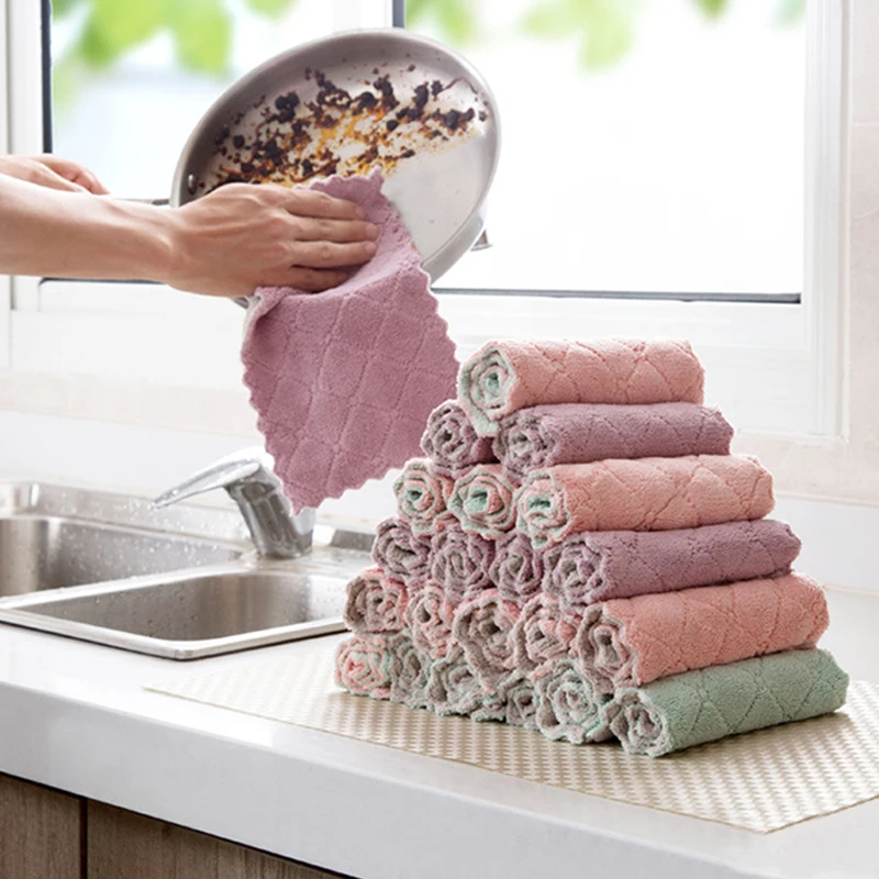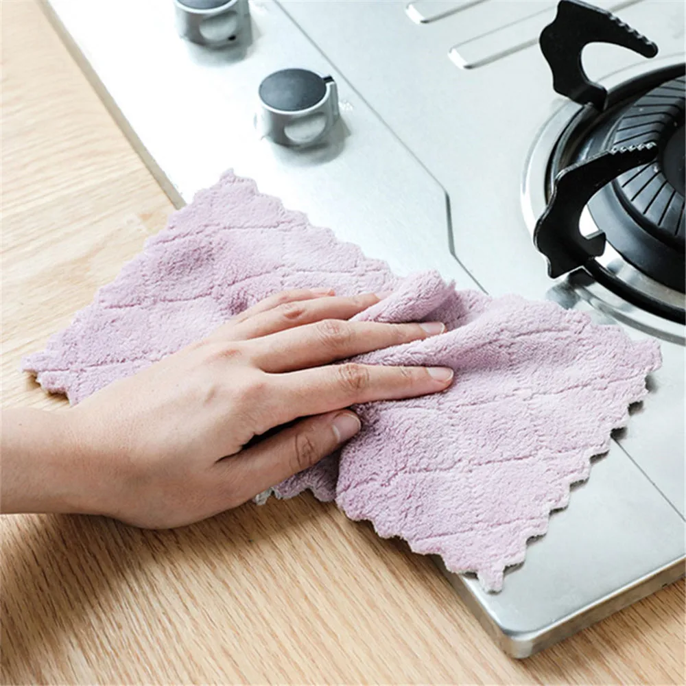 10pcsHousehold кухонное впитывающее полотенце толстое Двухслойное полотенце из микрофибры для мытья посуды