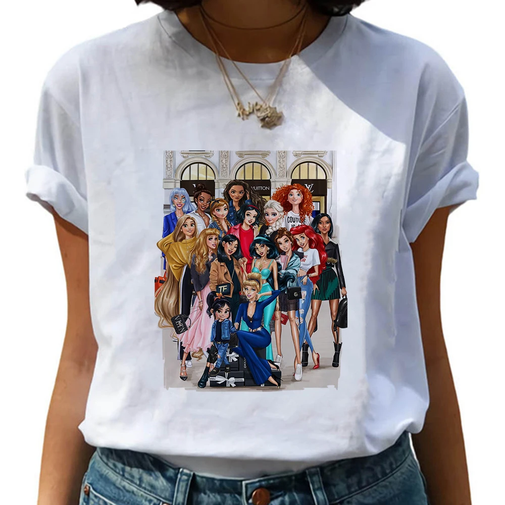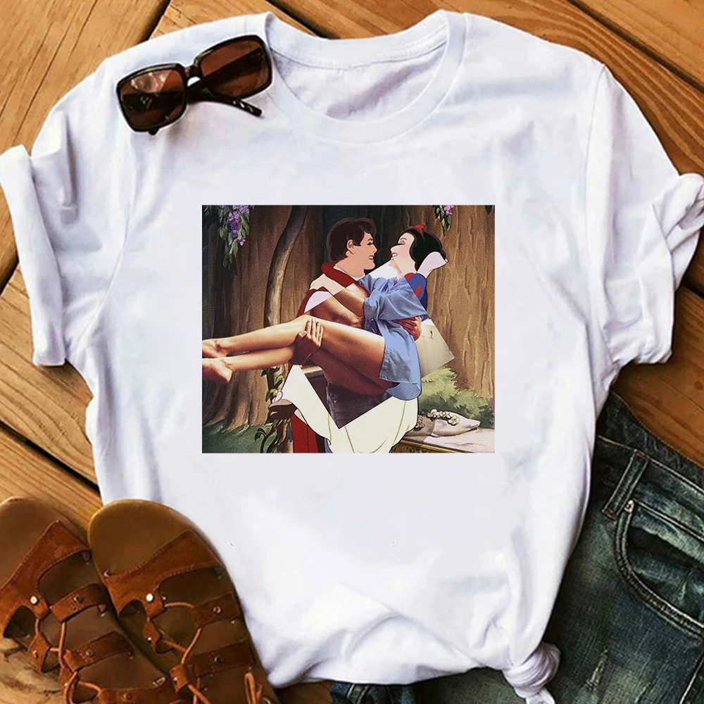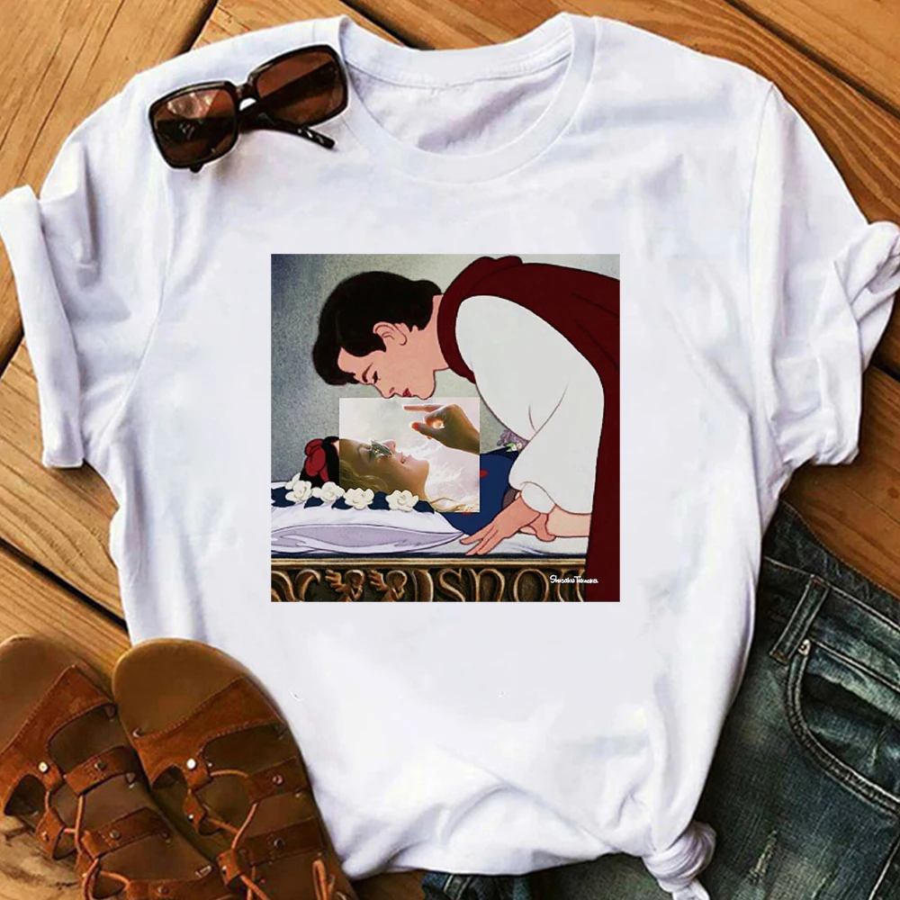 Женские футболки с татуировками в стиле диснеевских принцесс, белая...