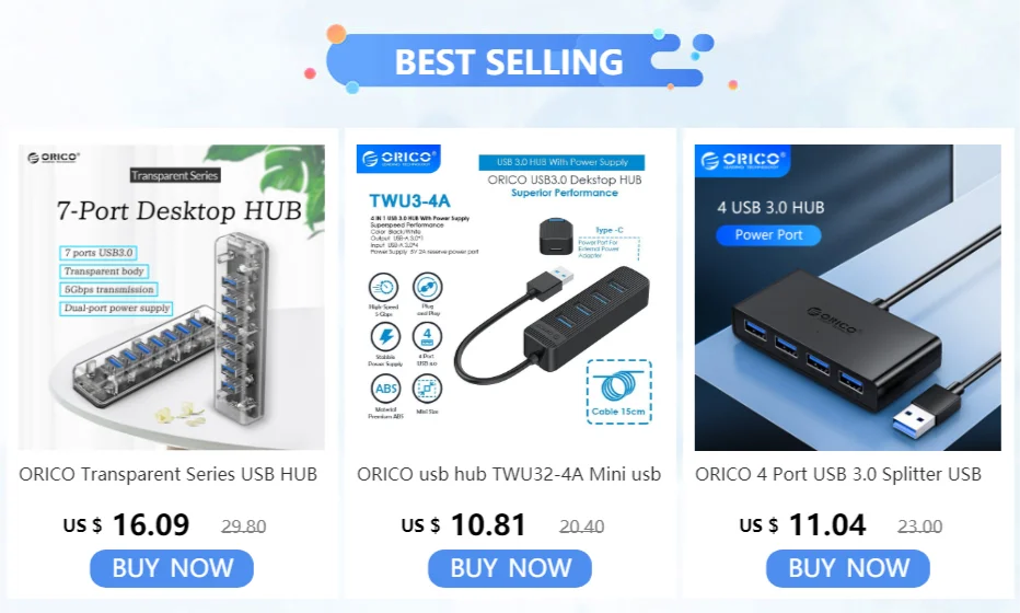 USB-разветвитель ORICO алюминиевый с 4 USB-портами и зажимом
