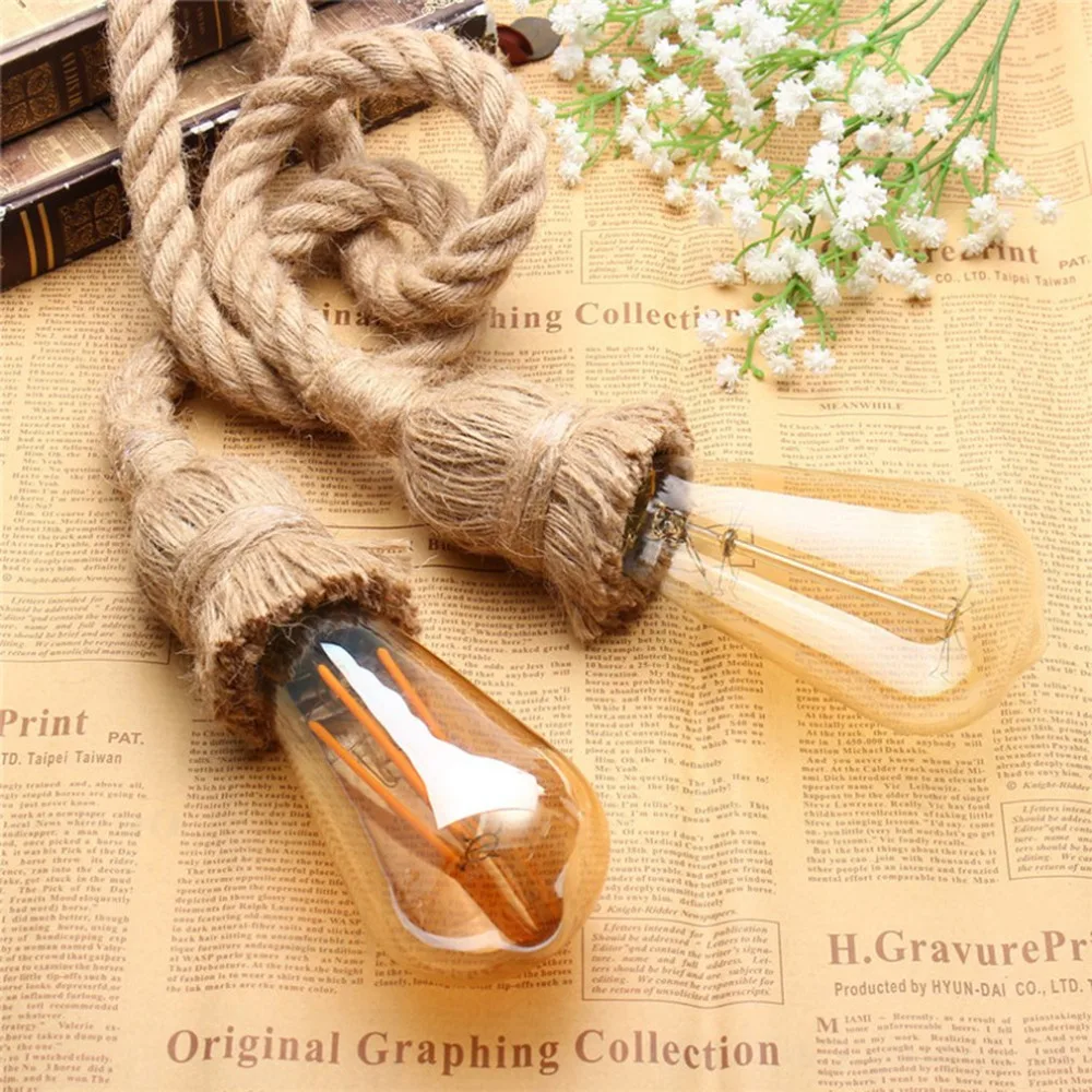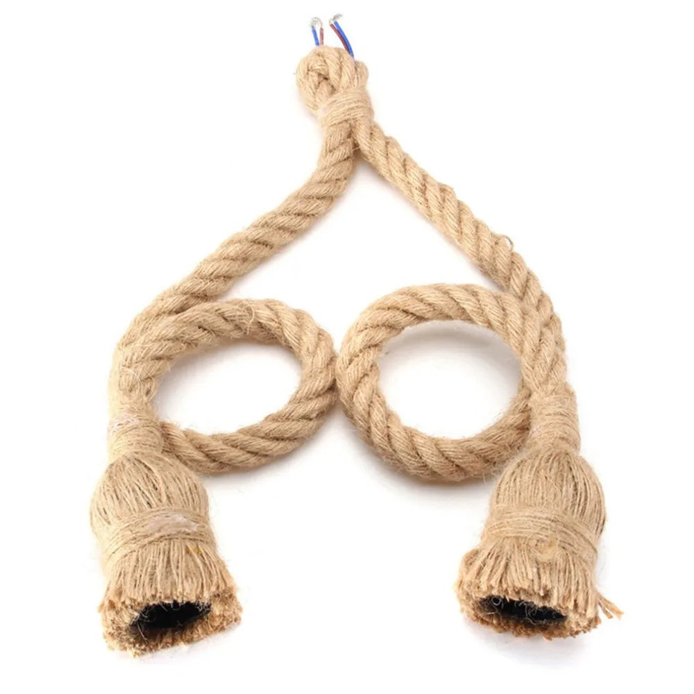 Подвесной светильник на веревке, подвесной светильник с двойной головкой, винтажный потолочный светильник, украшение для дома, пеньковая веревка