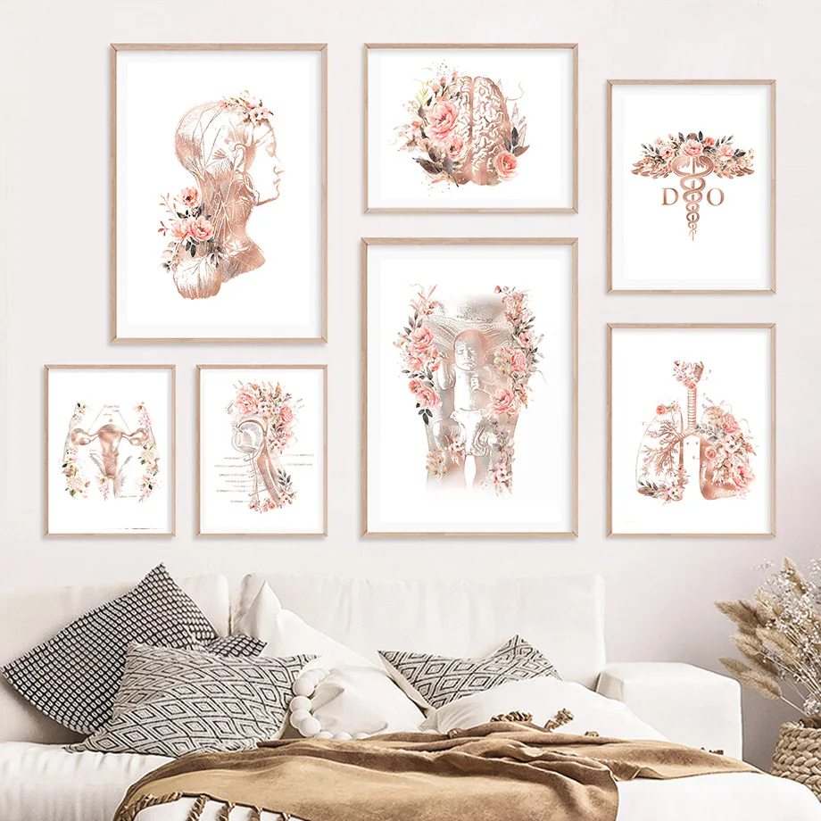 Цветок, анатомия, орган, искусство лёгких, матка, медицина, плакат ...