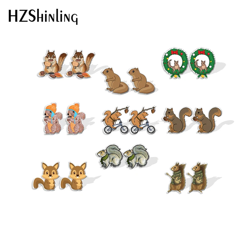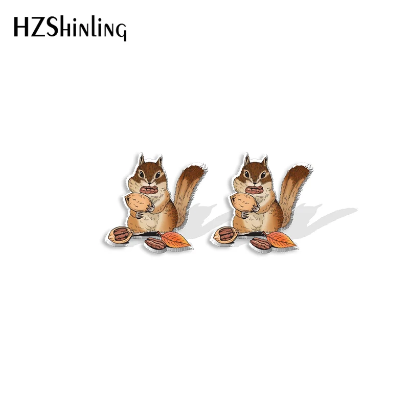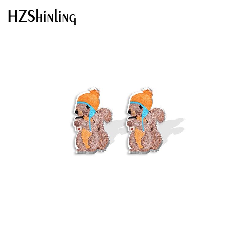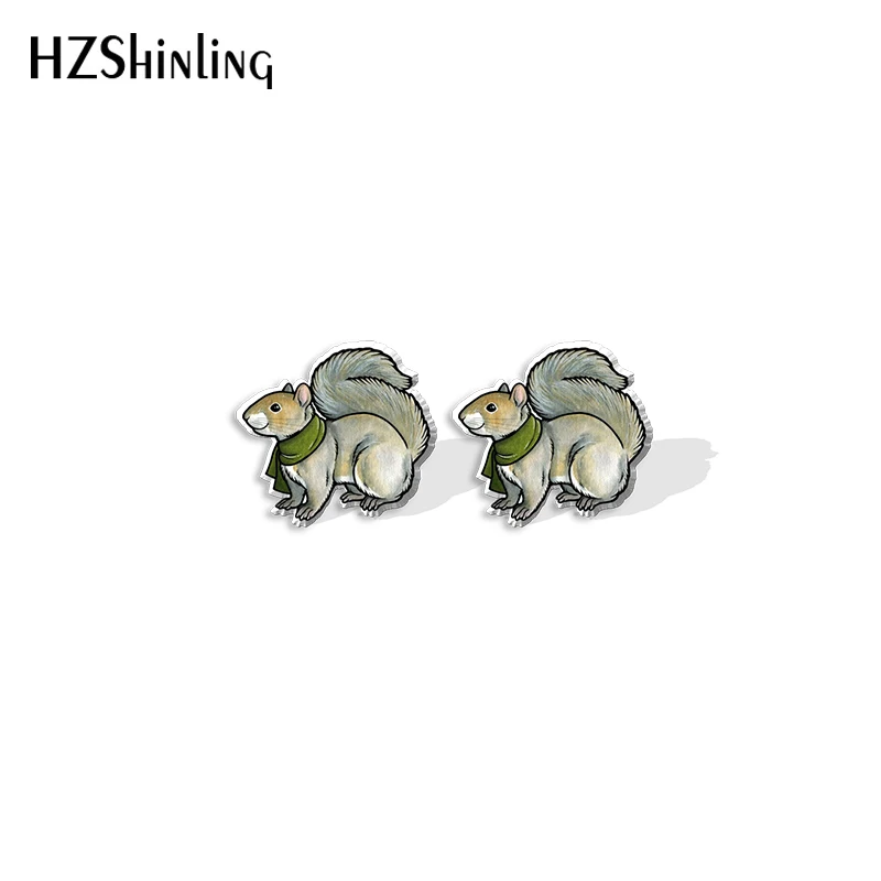 Новинка 2021, серьги-гвоздики в виде белки, искусство животных, искусство, эпоксидная фотография