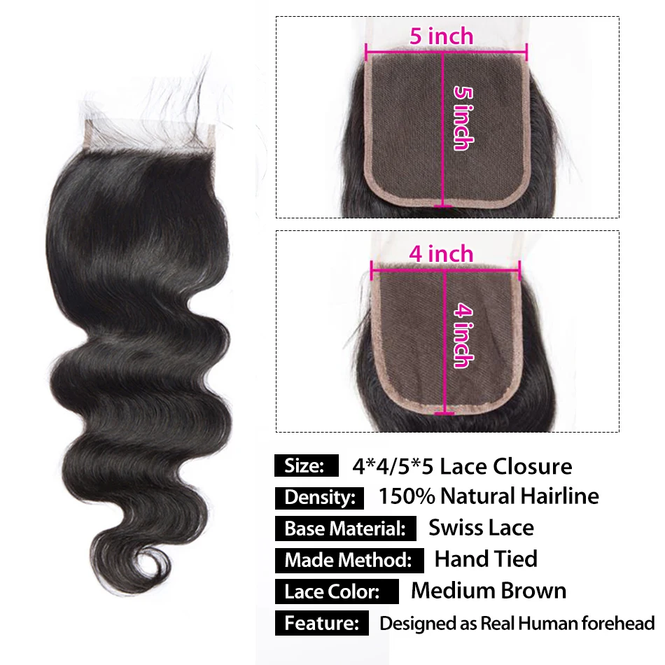 Мшере волнистые человеческие волосы пряди с закрытием 4x4 5x5 кружева закрытие бразильские волосы волнистые 30 дюймов длинные пряди с закрытием