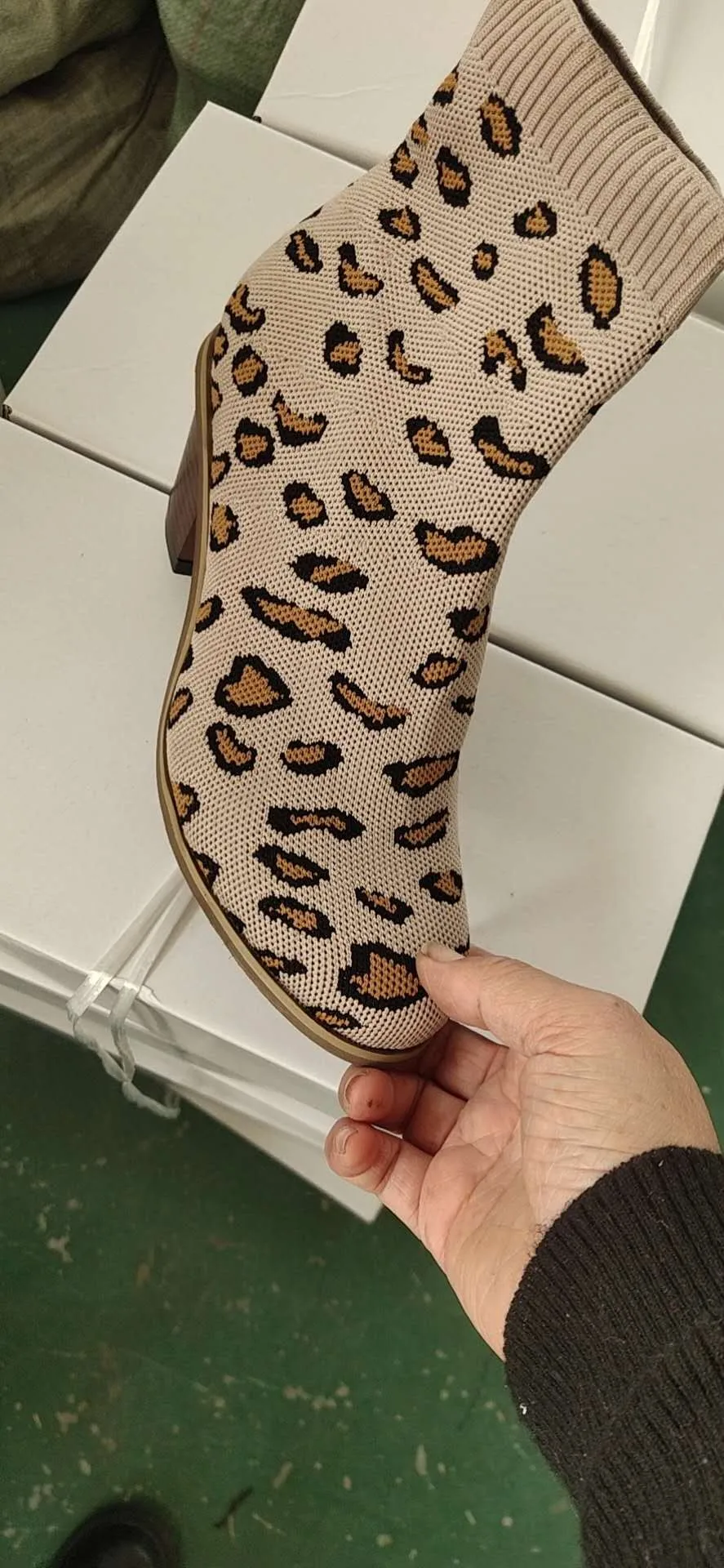 Женские леопардовые ботильоны, вязаные женские ботинки-носки, Модные осенние женские удобные короткие ботинки на блочном массивном каблуке