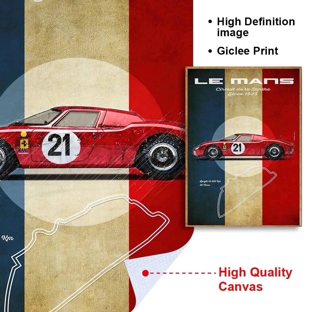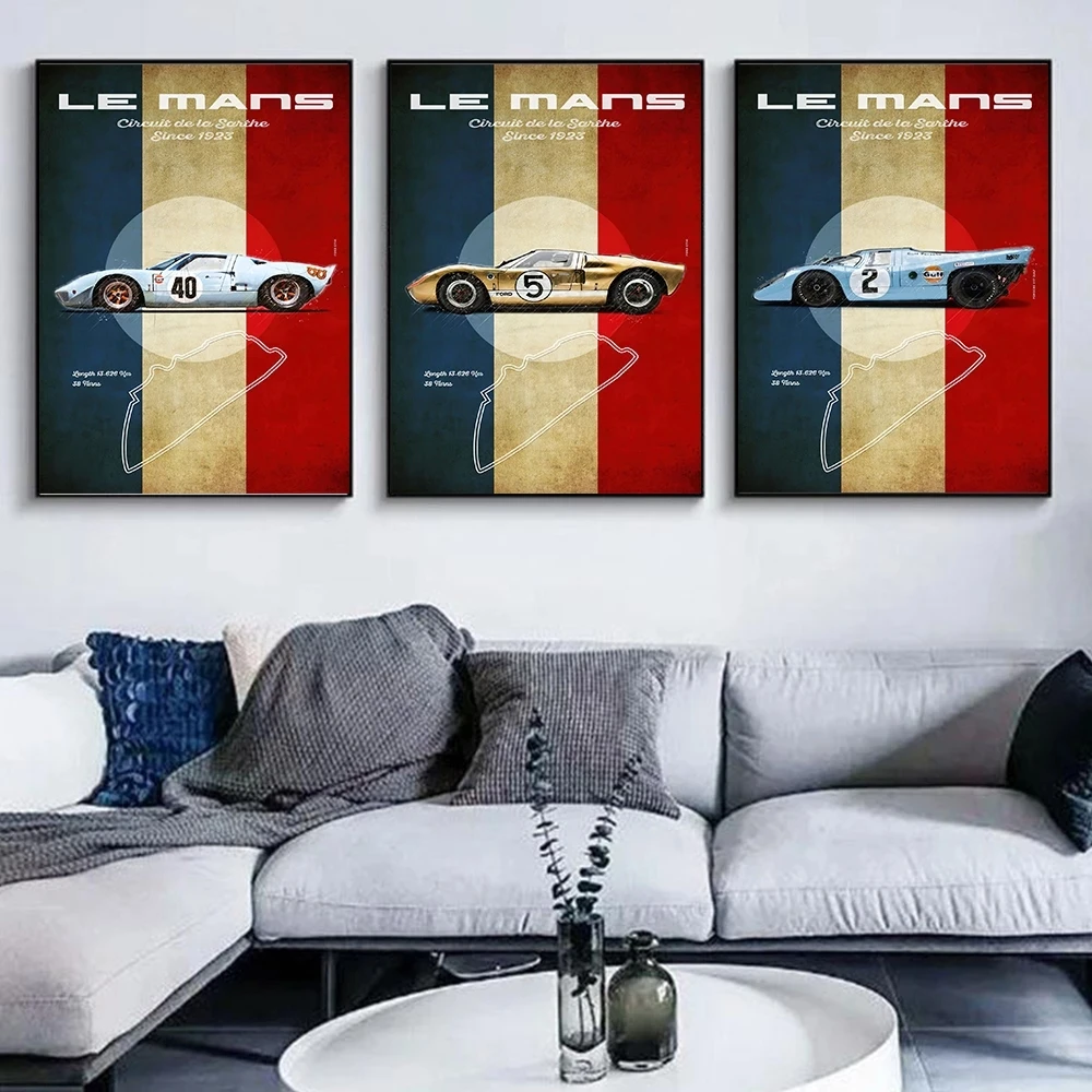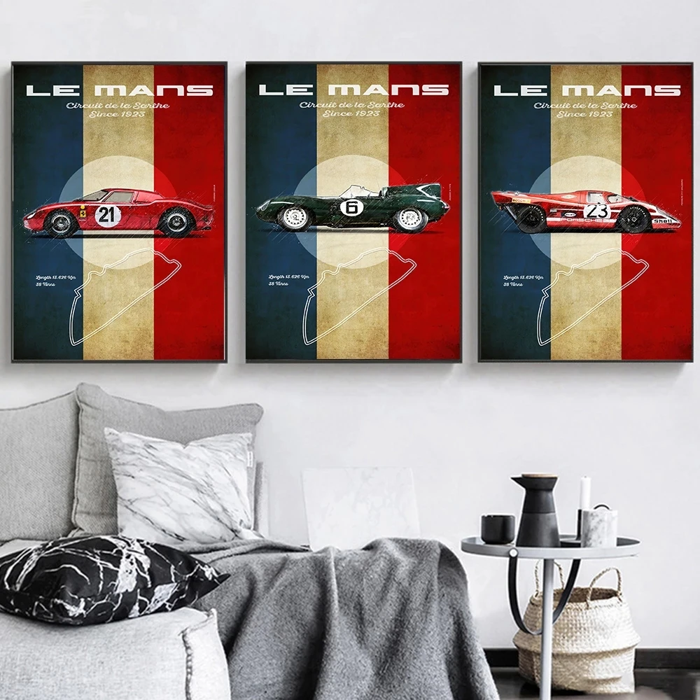 Постер Le Mans 24 часа, печать, гонки, холст, живопись, украшение для дома, Настенная картина, украшение для гостиной, настенное украшение
