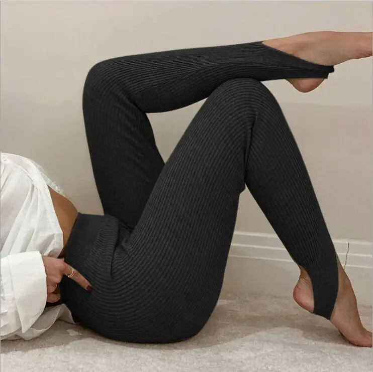 Осенние повседневные однотонные трикотажные леггинсы в рубчик, женс...