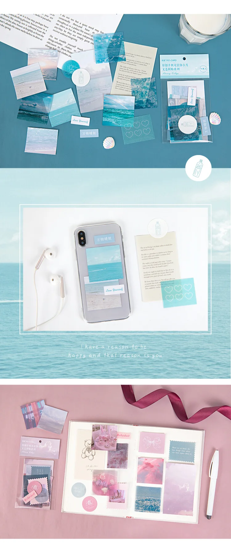 15 листов, милый блокнот для записей с изображением неба и морского...
