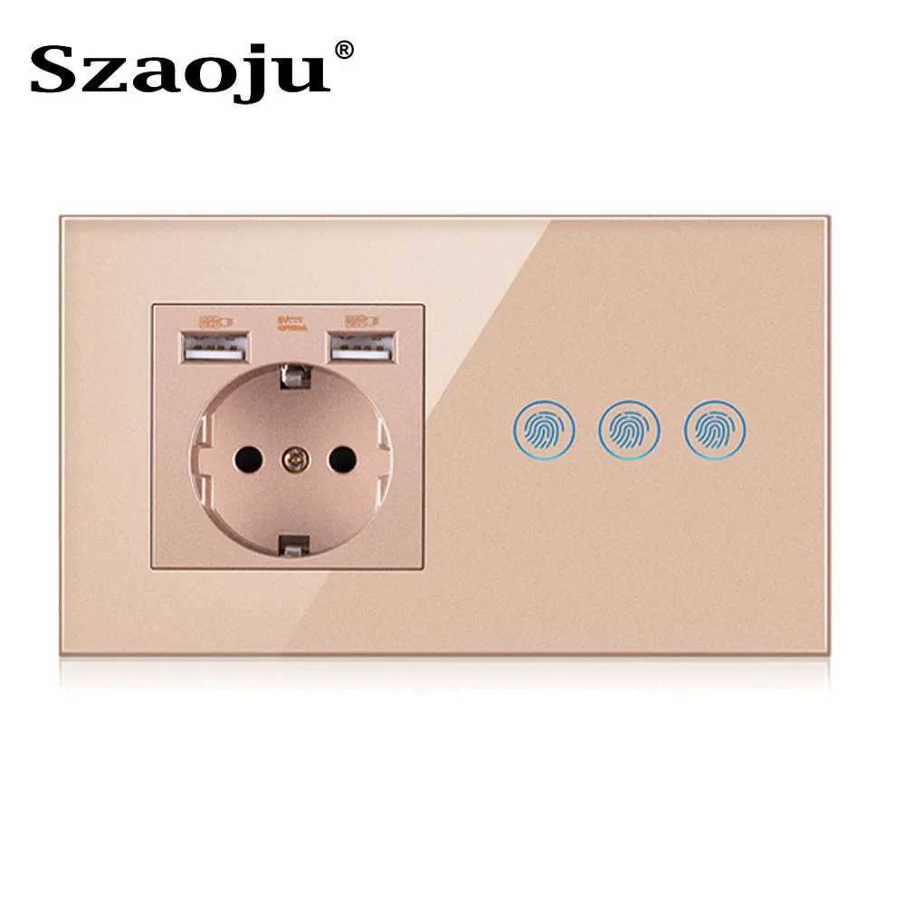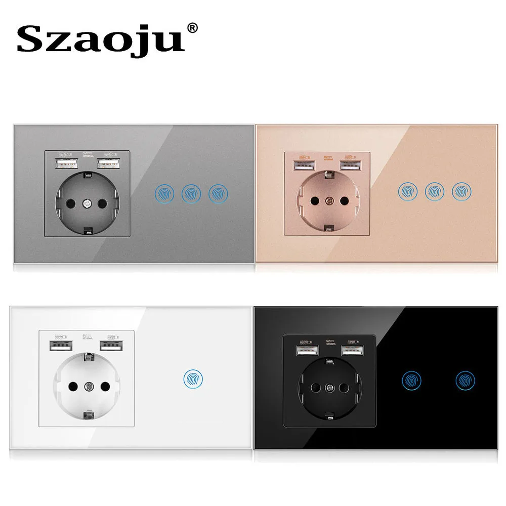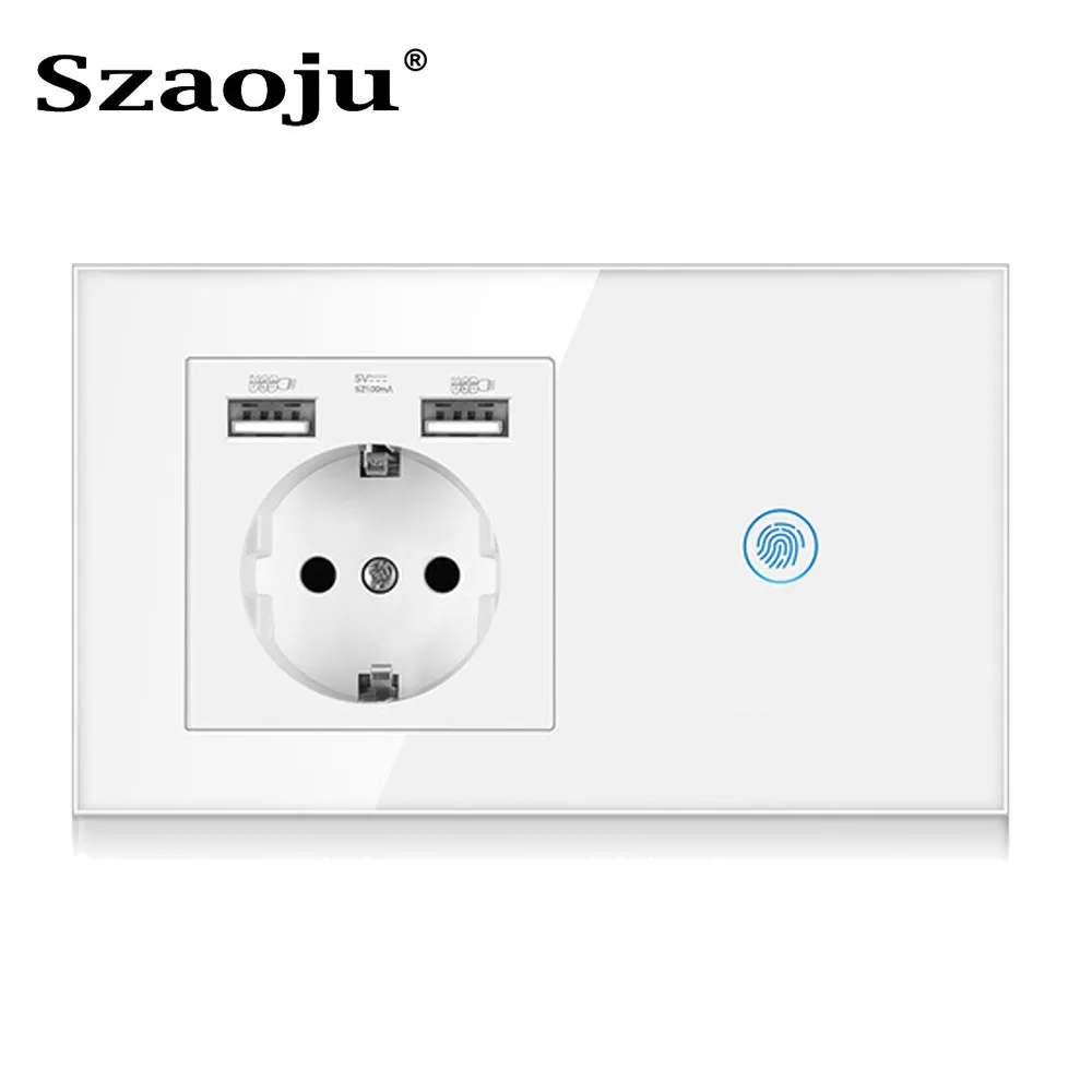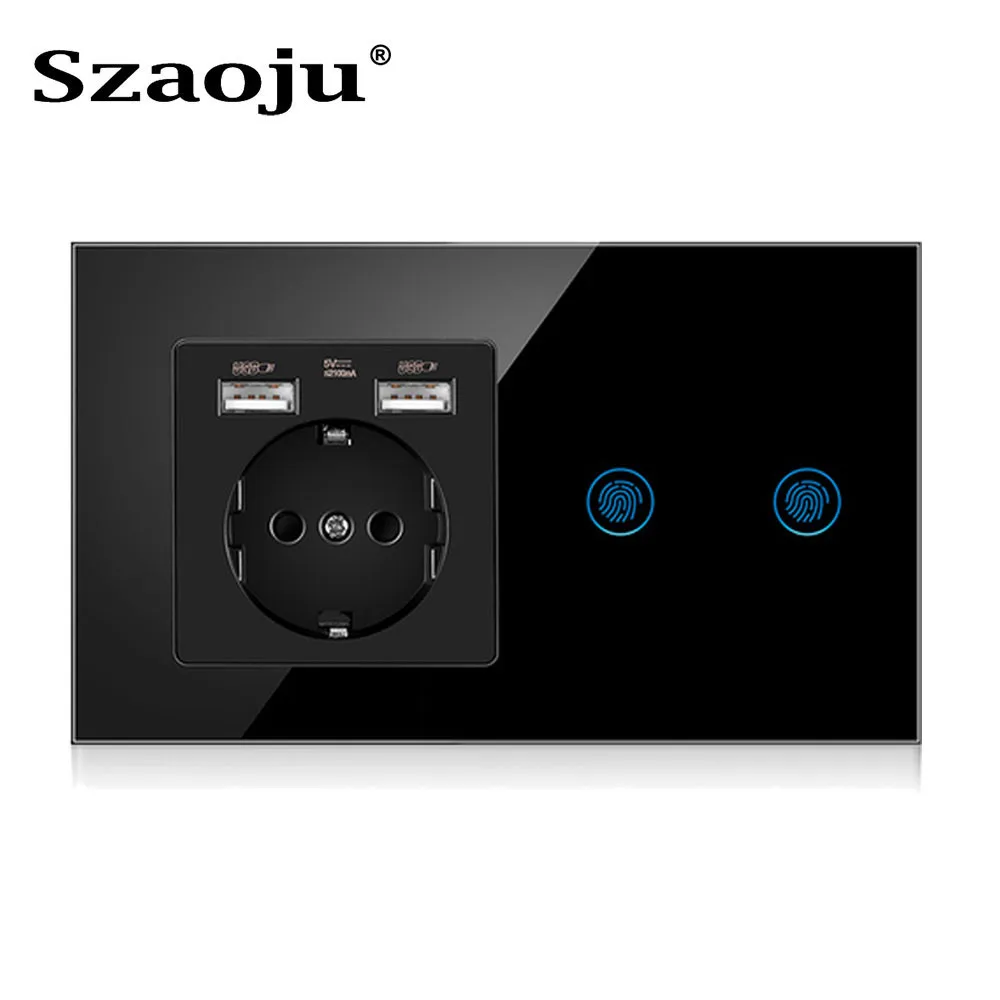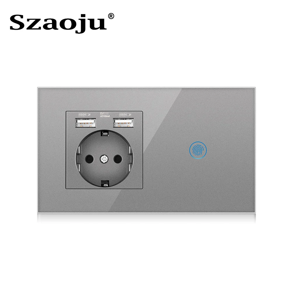 Сенсорный выключатель Szaoju для ЕС, настенный выключатель для лампы, розетка с USB, светодиодные переключатели, 123 клавиши, 1 канал, Wi-Fi, умная стеклянная панель