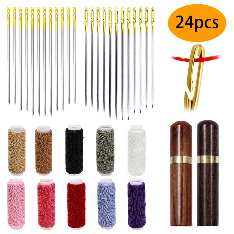 Швейные иглы из нержавеющей стали, самонитевающиеся слепые иглы, крупные иглы для нити, швейные инструменты с бутылками, вощеная нить