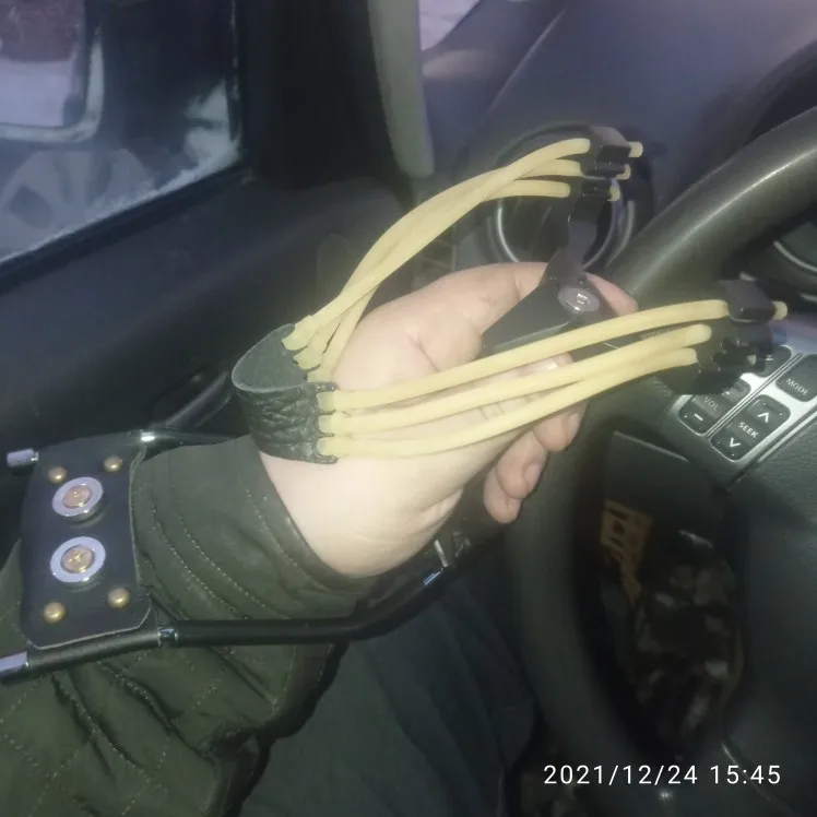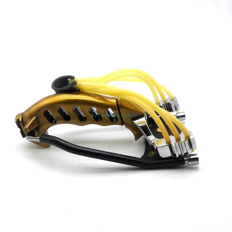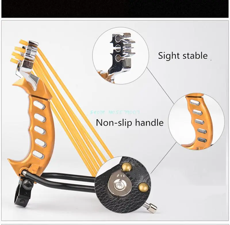 Рогатка преимущества:1. Головка рогатки, ручки рогатки изготовлены из металла. Очень крепким.2. Рогатка может быть установлена с 6 резиновыми лентами, которые очень мощные и подходят для охоты.3. Рогатка оснащена подставкой для запястья, которая может разложить часть тянущей силы на руку для лучшей стабильности съемки.