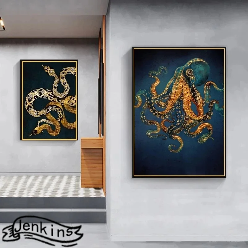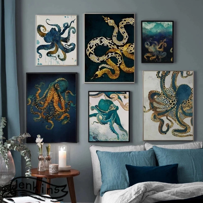 Скандинавские темные животные, змея, осьминог, медуза, кальмар, плакаты и принты, холст, живопись, настенное искусство, картины для гостиной, домашний декор