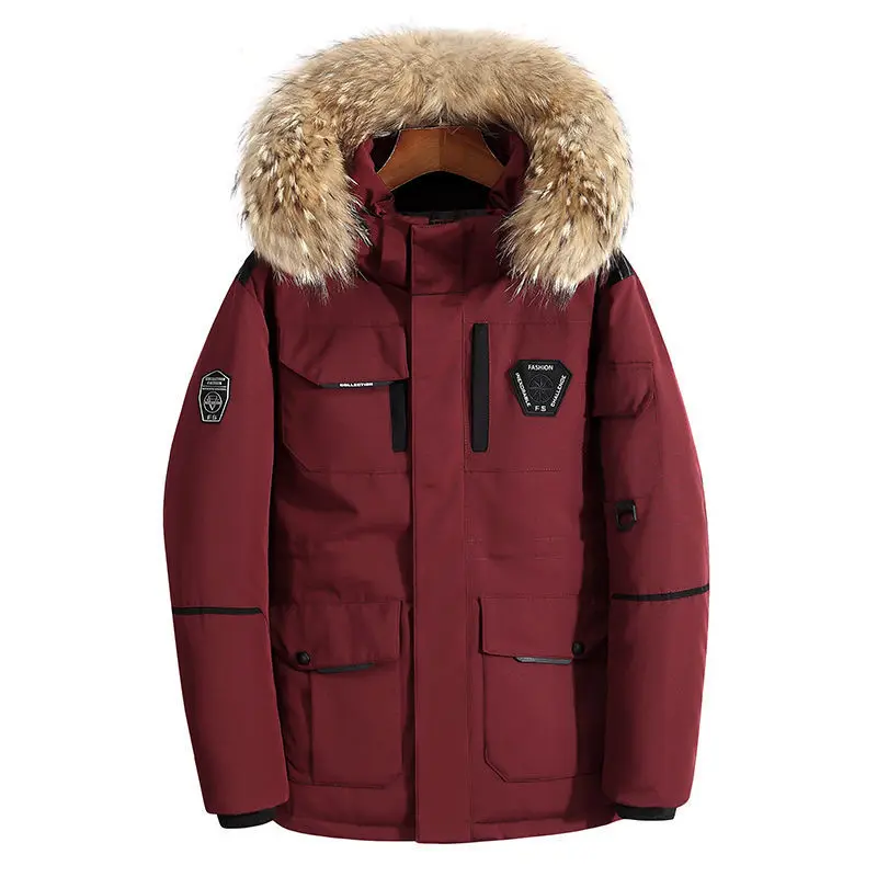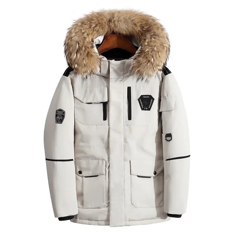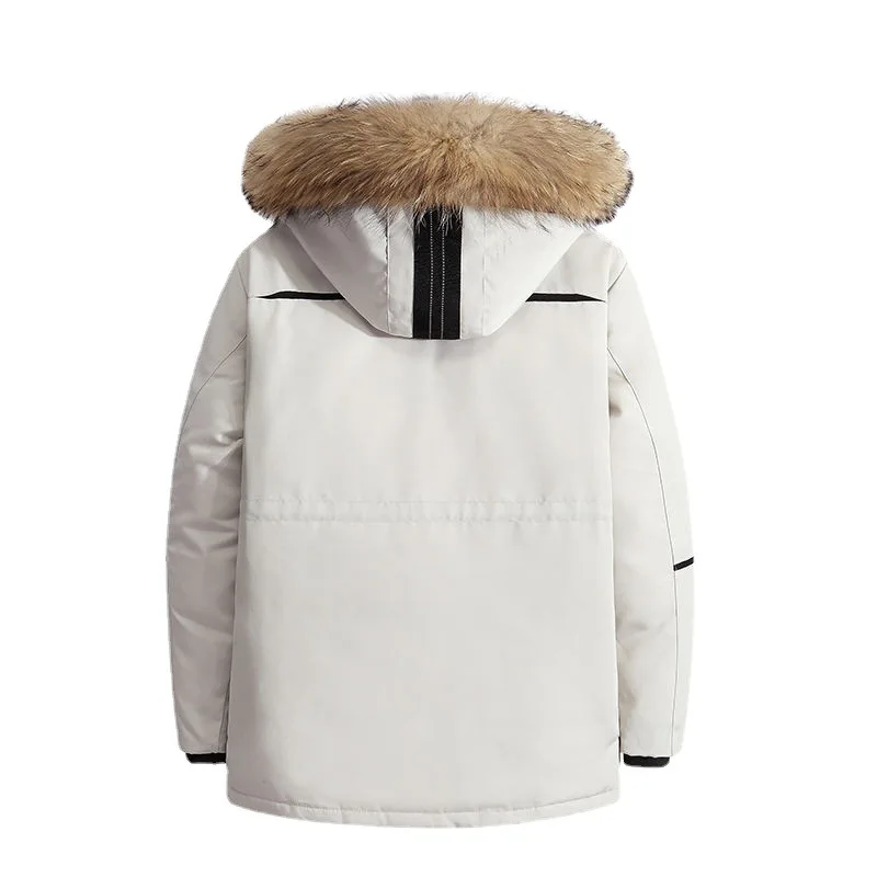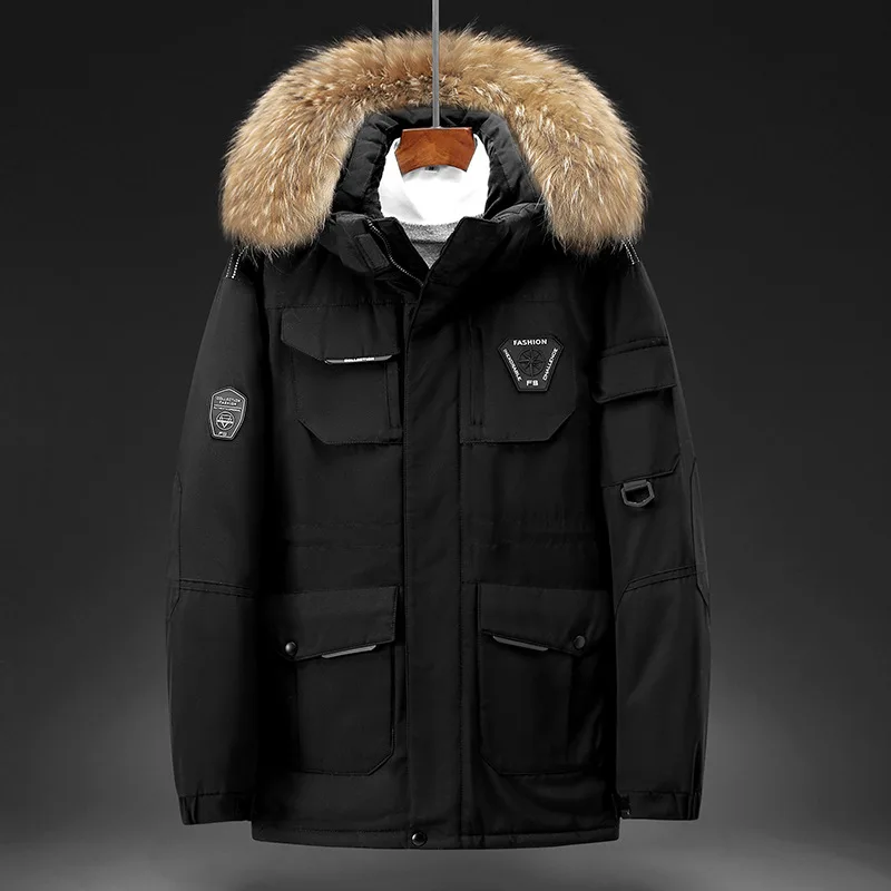 Мужская парка средней длины, пальто со съемным меховым воротником, Мужская зимняя пуховая куртка, теплый Анорак на белом утином пуху с капюшоном, Мужская водонепроницаемая куртка