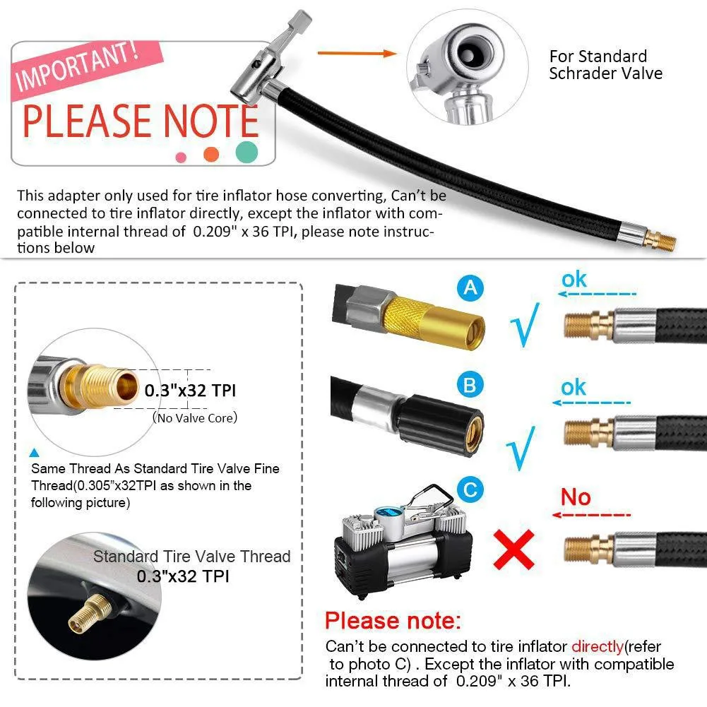Автомобильный насос с воздушной зарядкой, удлинительная трубка с винтовым зажимом, конверсионная насадка с быстрым зажимом для автомобильных шин, Цанга быстрого надувания