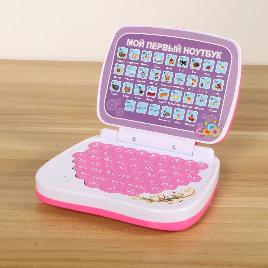 Мини-компьютер с русской обучающей машинкой и произношением алфавита, Детская развивающая игрушка-ноутбук розового и синего цветов