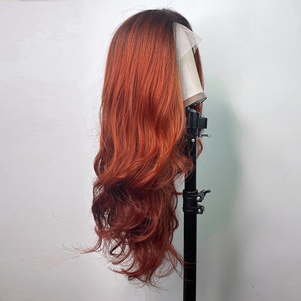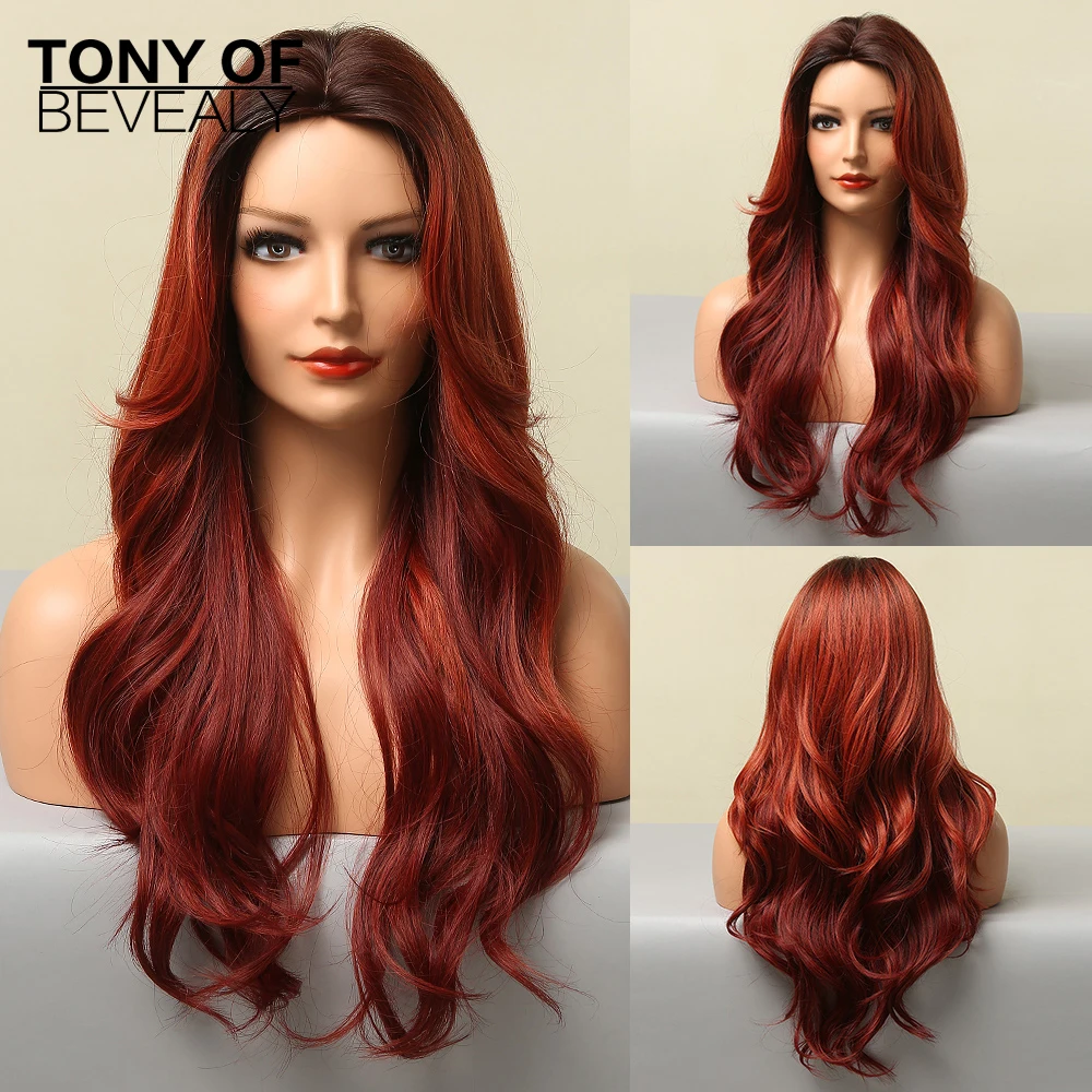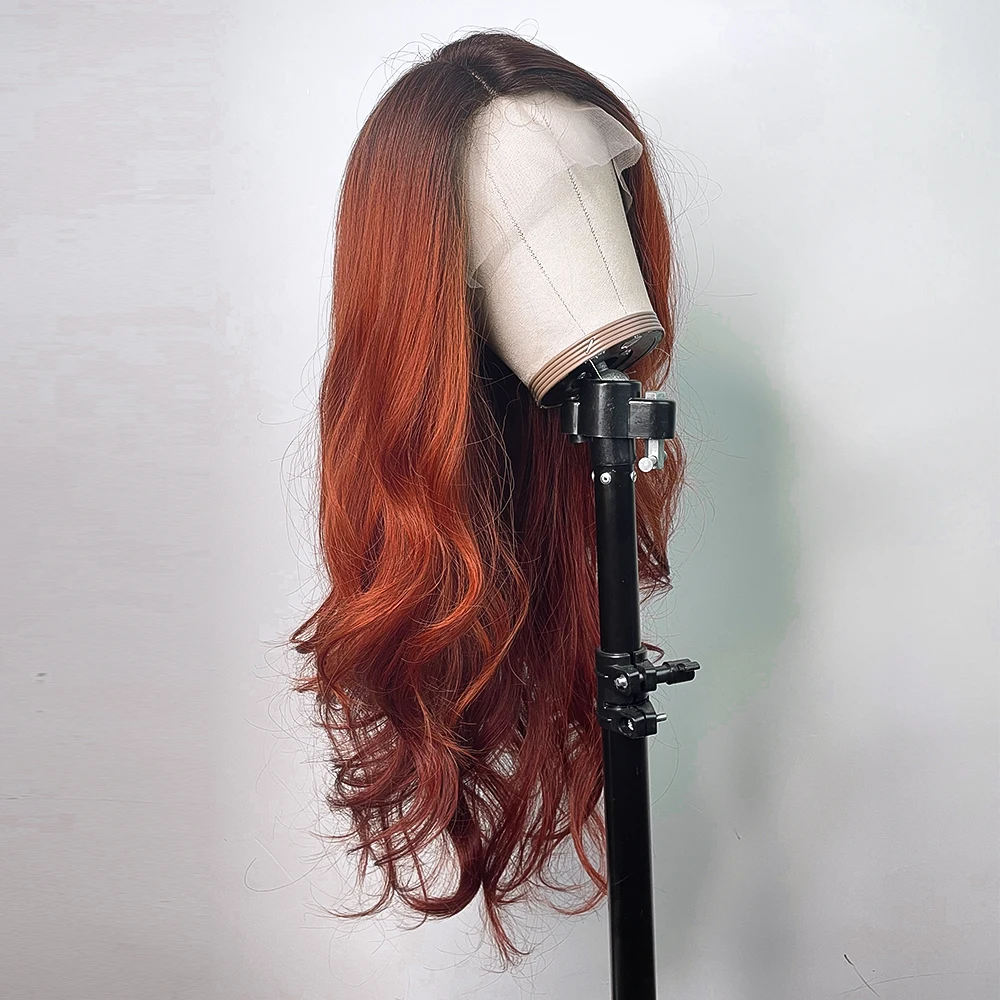 Парик со шнуровкой спереди коричневый-красный Омбре синтетические волосы средняя часть парик на шнуровке спереди длинный волнистый бесклеевой прозрачный парик на шнуровке для женщин