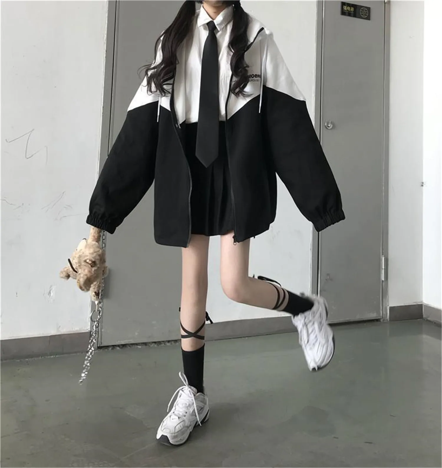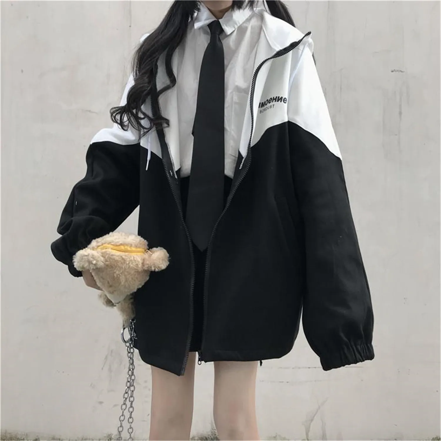 Куртка на молнии в японском стиле Harajuku Ulzzang, свободная куртк...