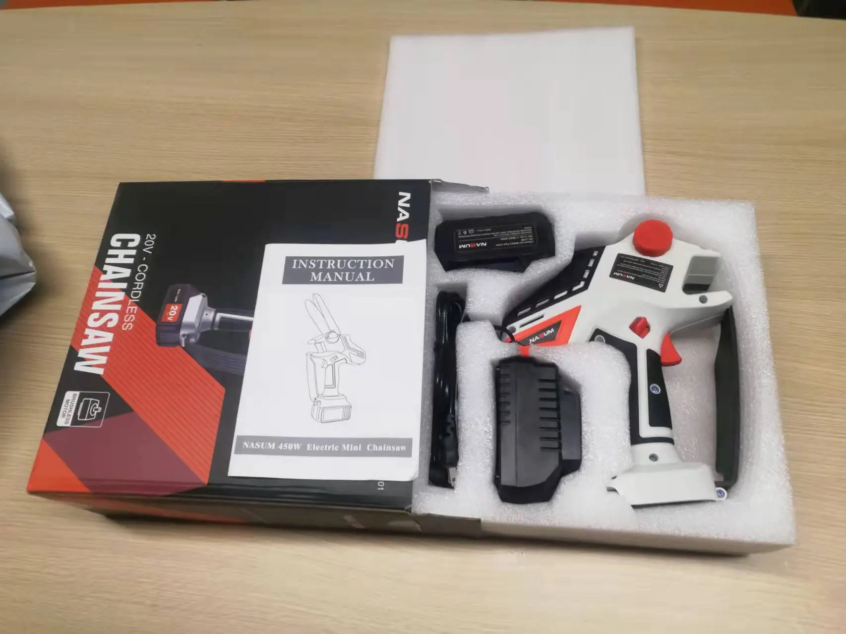 1 хостЗарядное устройство-1 шт.1 х литий-ионный аккумулятор 3.0Ah1 x цепь1 x Регулируемый ободок1 x направляющая пластина1 х винтовые аксессуары1 отвертка