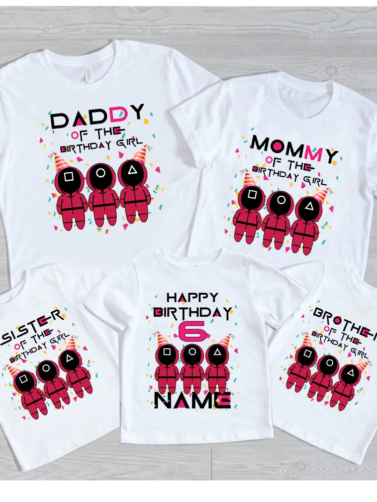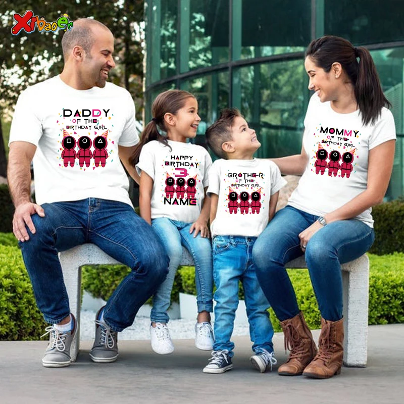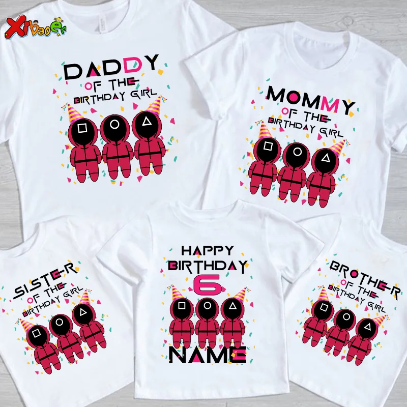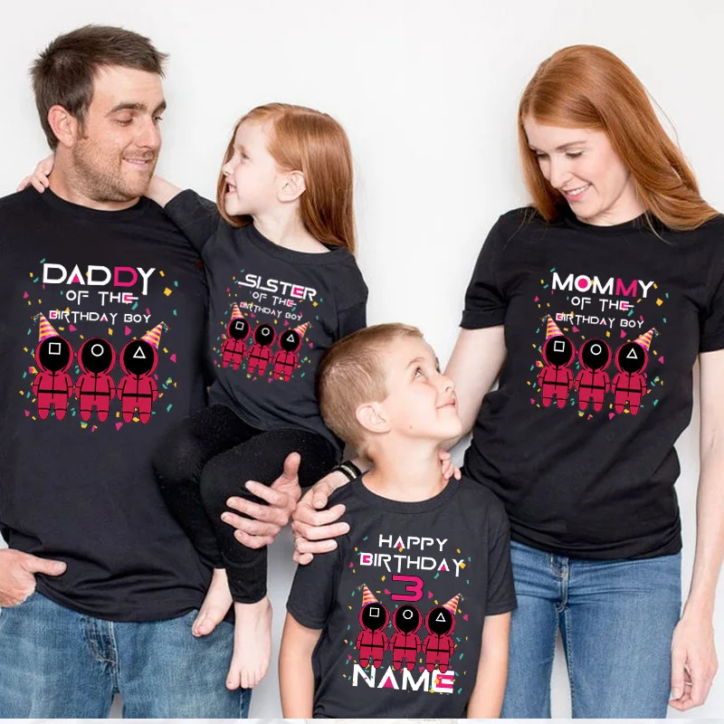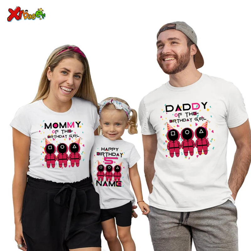 Футболка на день рождения, одинаковые наряды для семьи, одежда с именем на заказ, рубашка на день рождения, подарок, рубашка с кальмаром, детская одежда, наряды для вечеринки 6 лет
