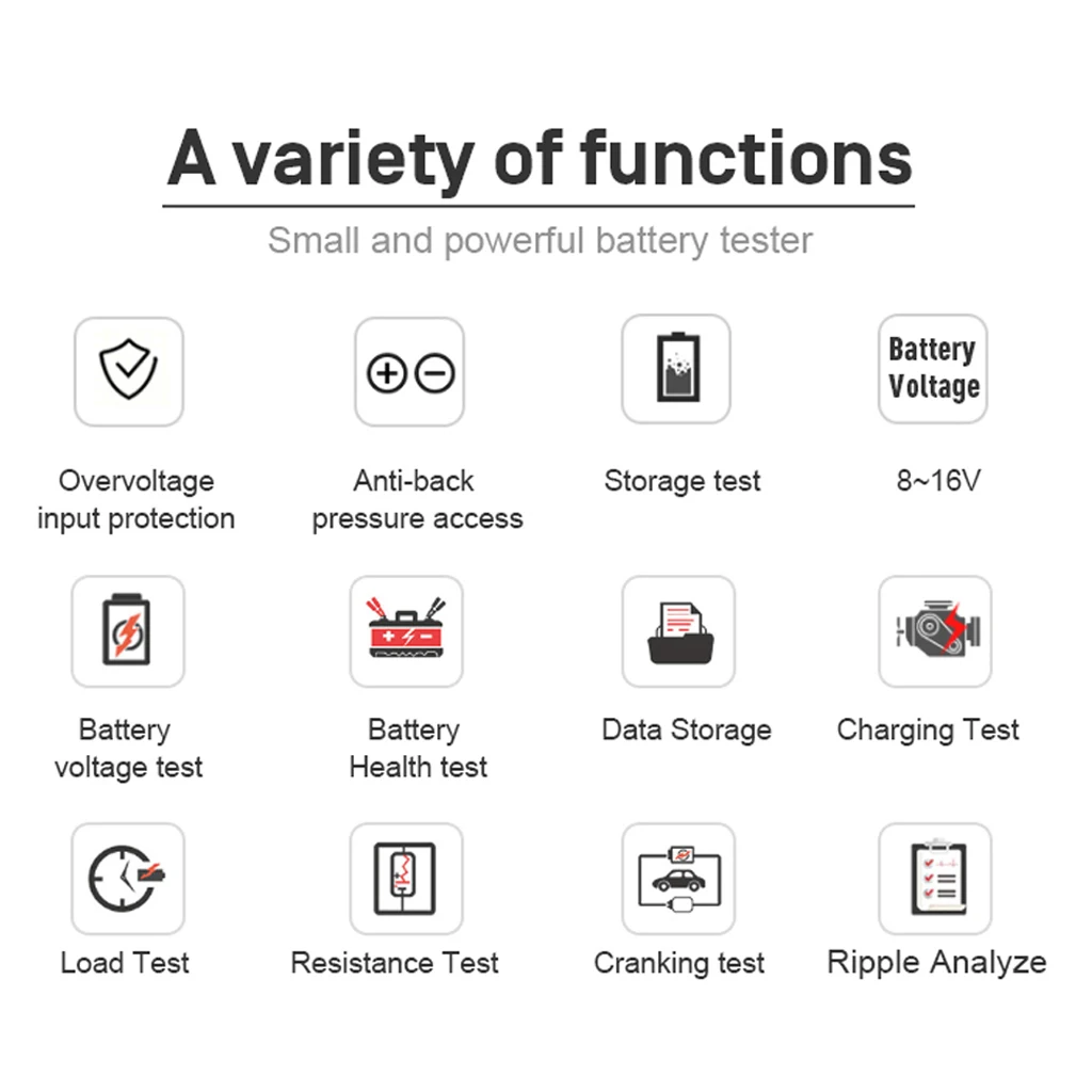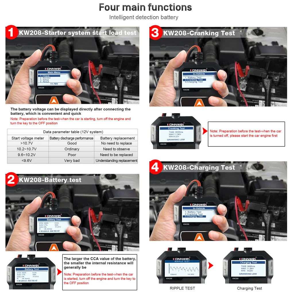 Тестер автомобильного аккумулятора KW208, 12 В, от 100 до 2000CCA