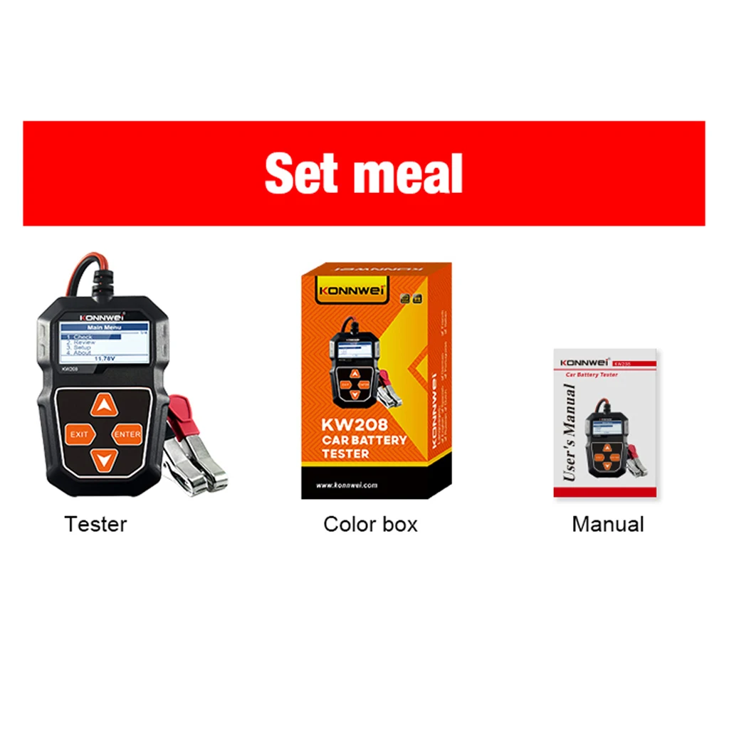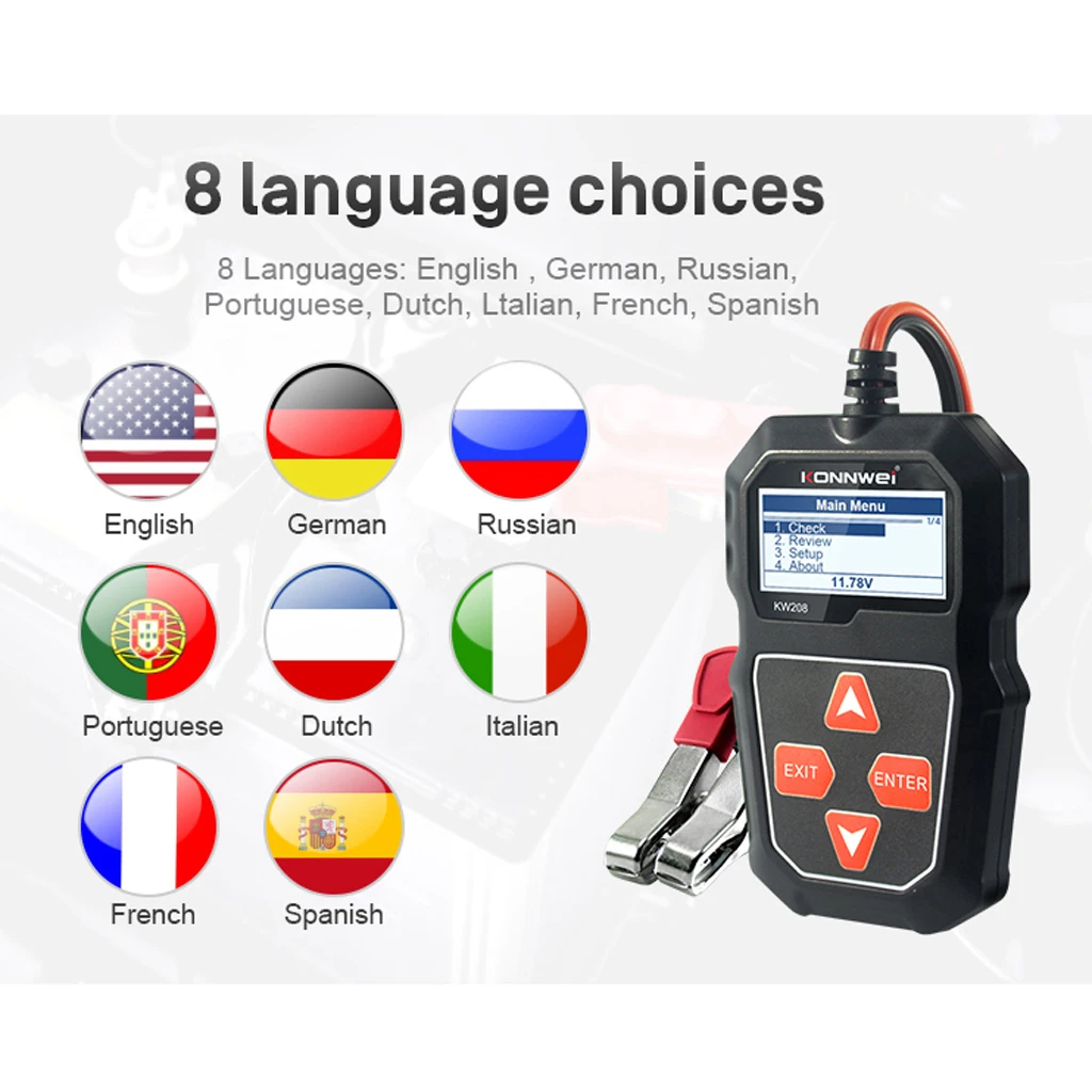 Тестер автомобильных аккумуляторов KONNWEI KW208, 12 В, 100-2000CCA