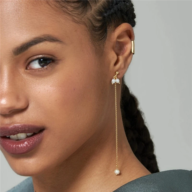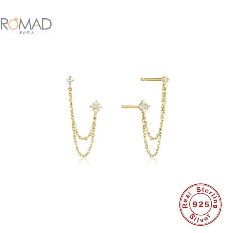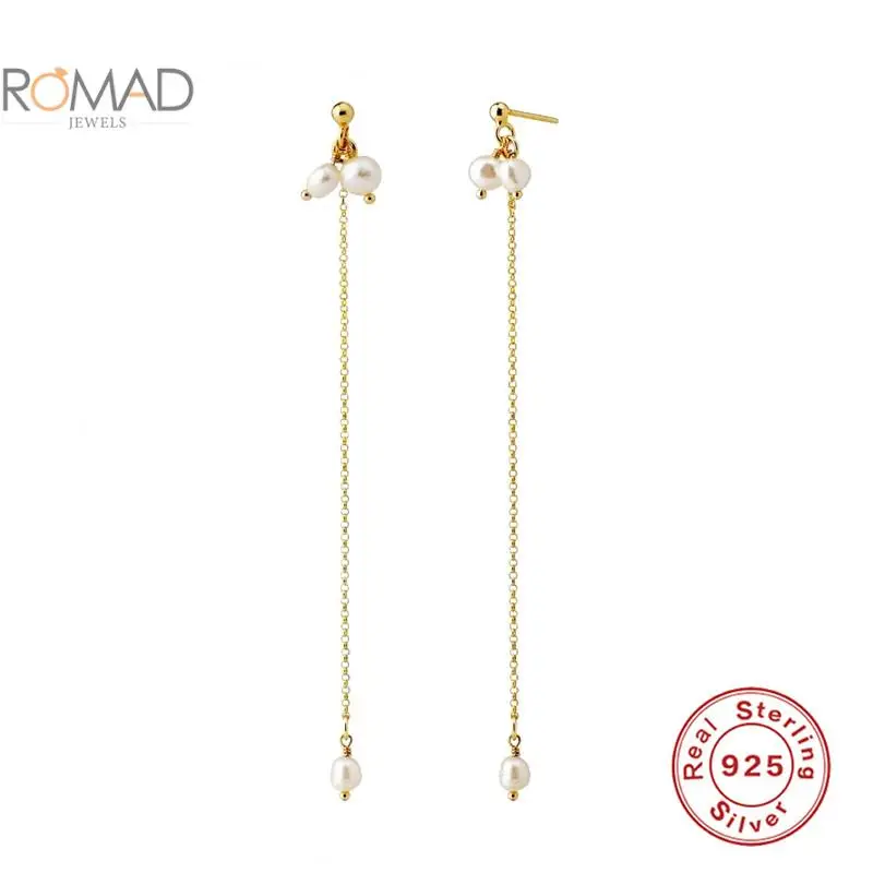 Женские серьги-гвоздики ROMAD Pendientes Plata, серьги из стерлингового серебра 925 пробы с длинной цепочкой, инкрустированные бриллиантами и жемчугом, золотые ювелирные изделия