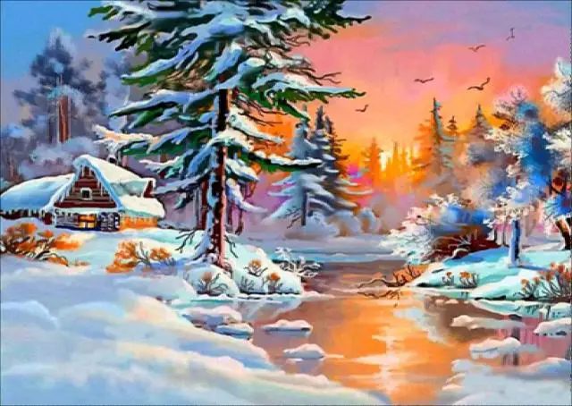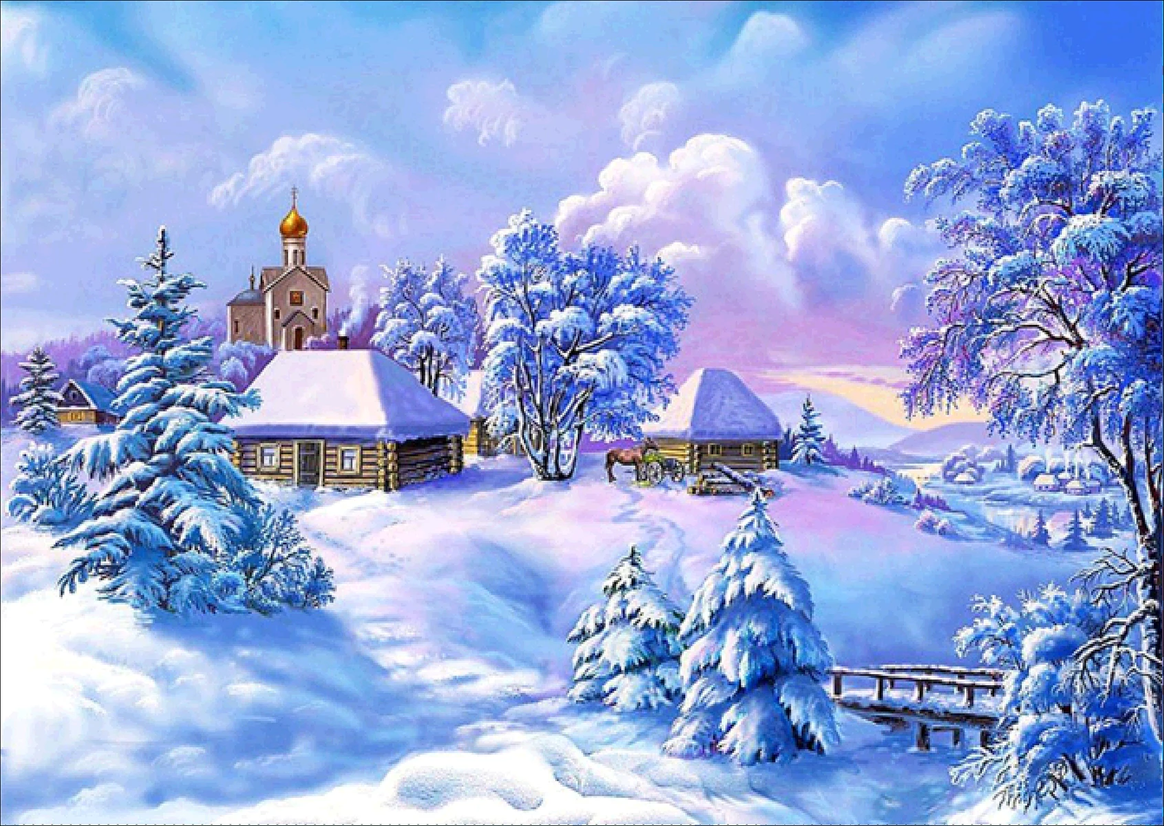 Алмазная 5D картина сделай сам, Рождественский пейзаж, полная вышив...