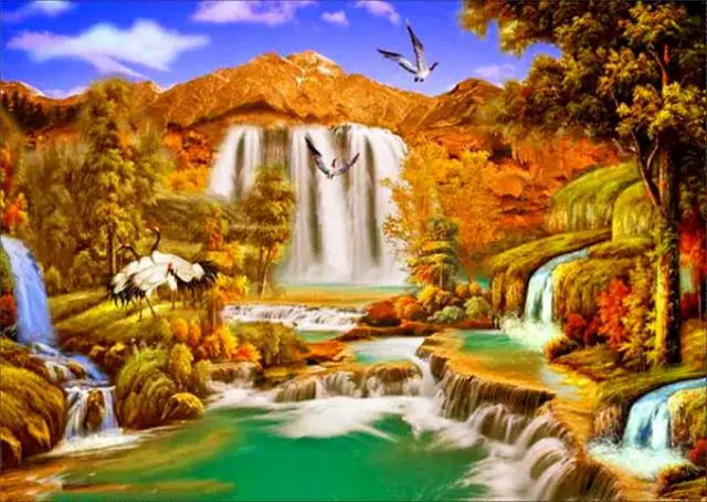 Пейзаж водопад 5D алмазная живопись новый продукт вышивка стразами ...