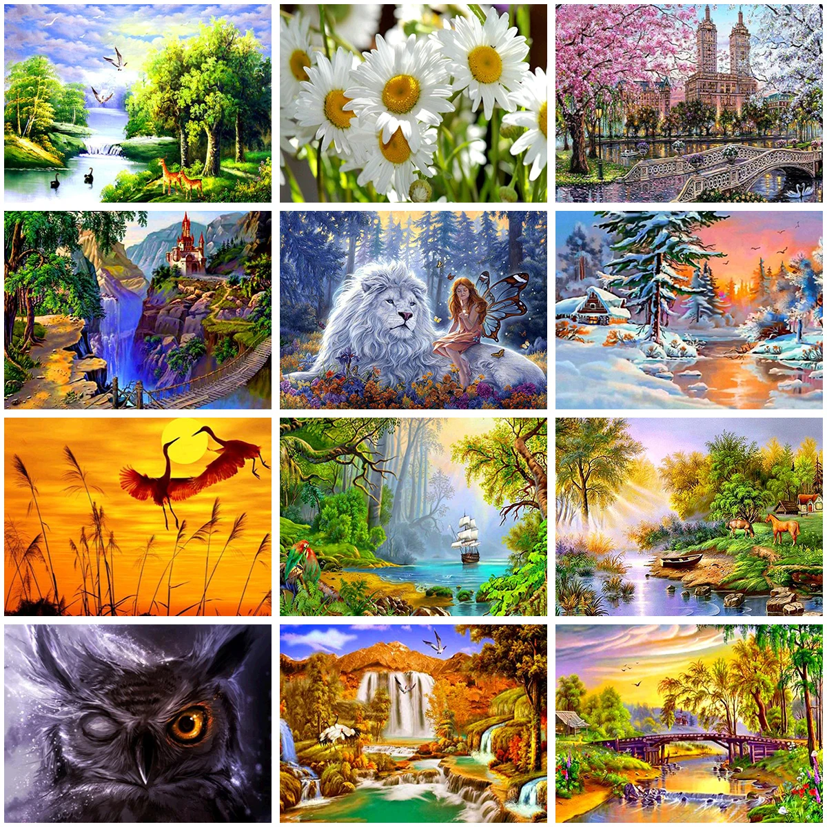 Алмазная картина 5D с изображением пейзажа, растений, цветов, вышив...