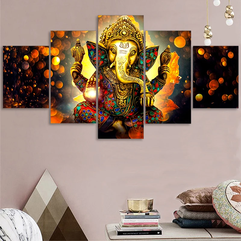 Индуийский Бог Ганеша картина слона на холсте спальня 5 шт. Холст плакат гостиная художественные принты настенные картины Домашний декор