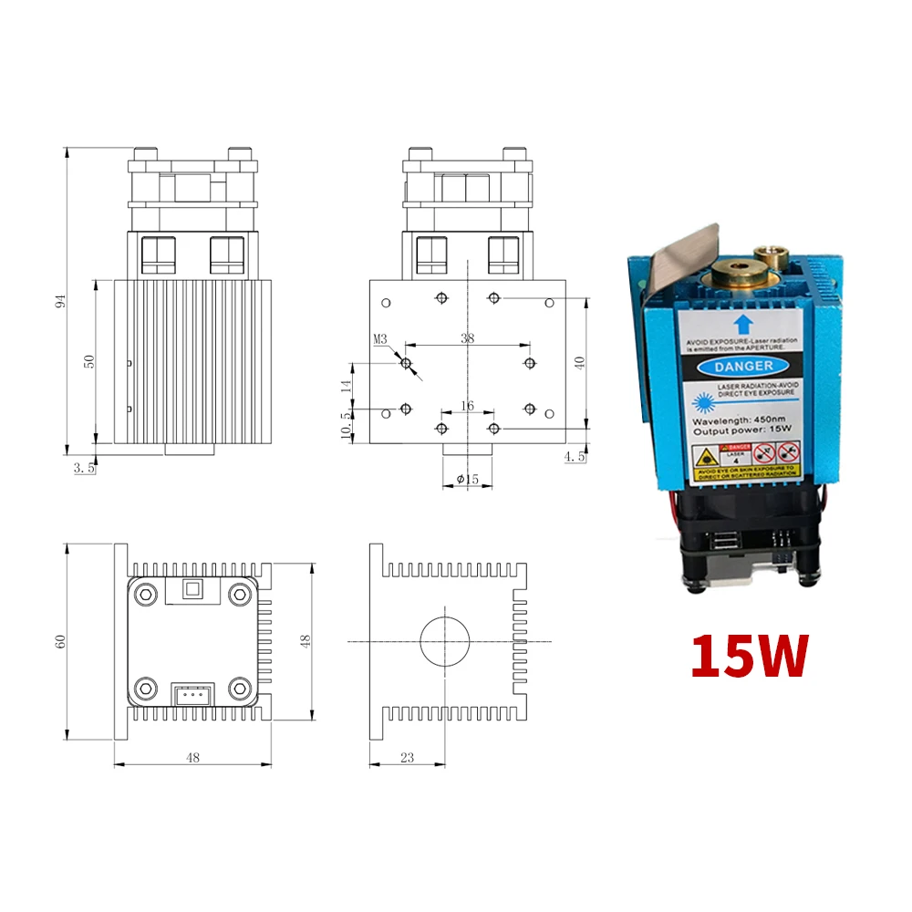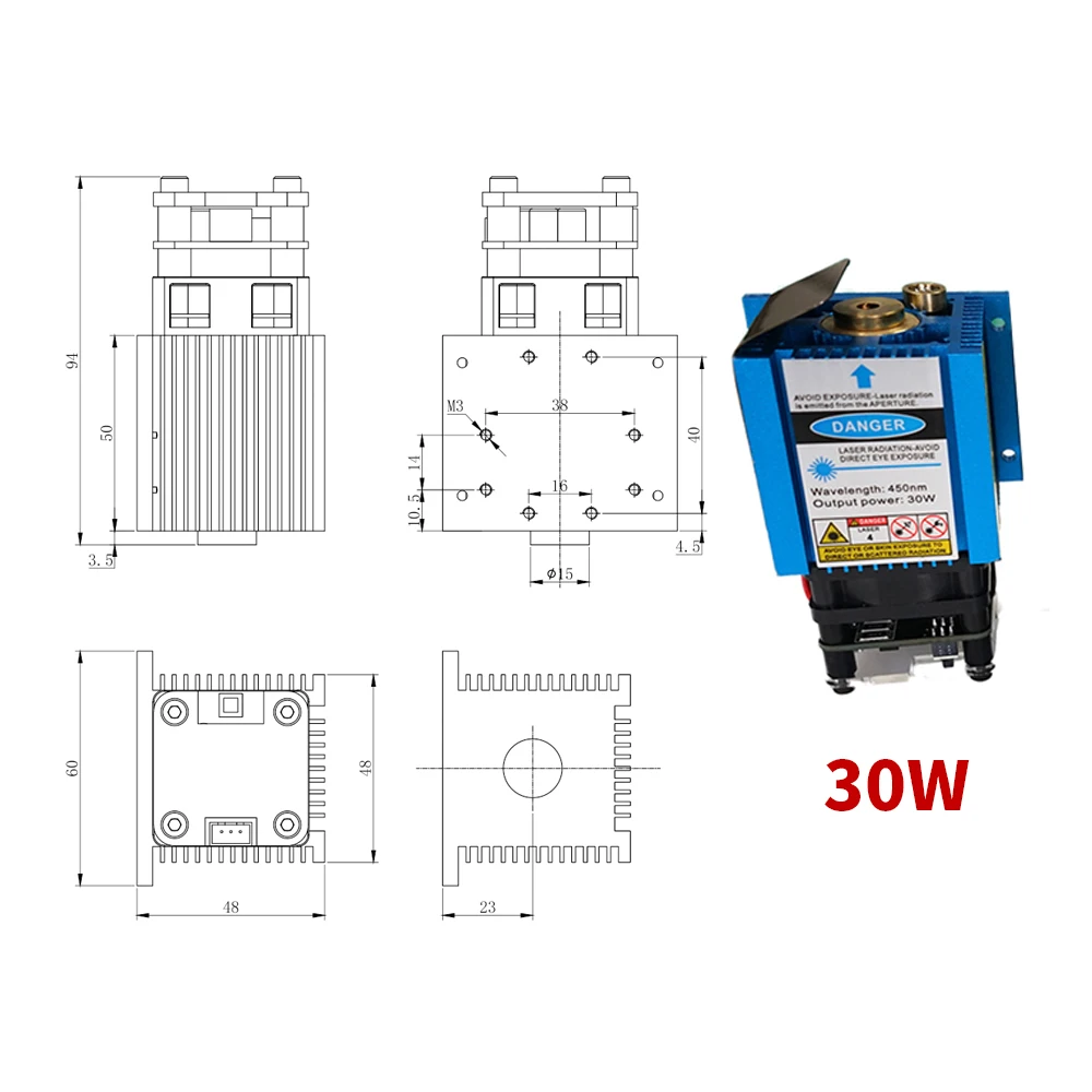 5.-- 30 Вт Размер 51 мм лазер более мощный и охлаждающий