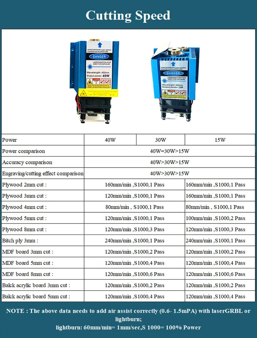 Лсер мощность: 40 Вт = 30W> 15w> 5,5 w> 3,5 w