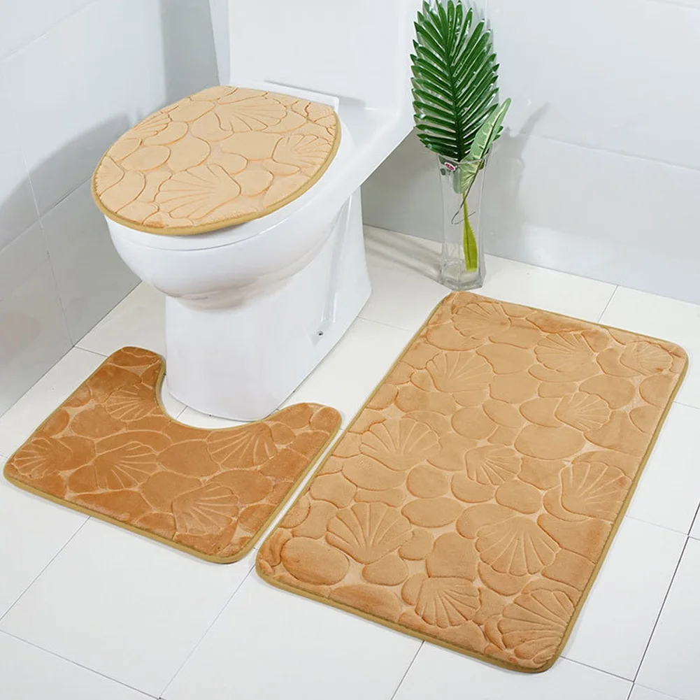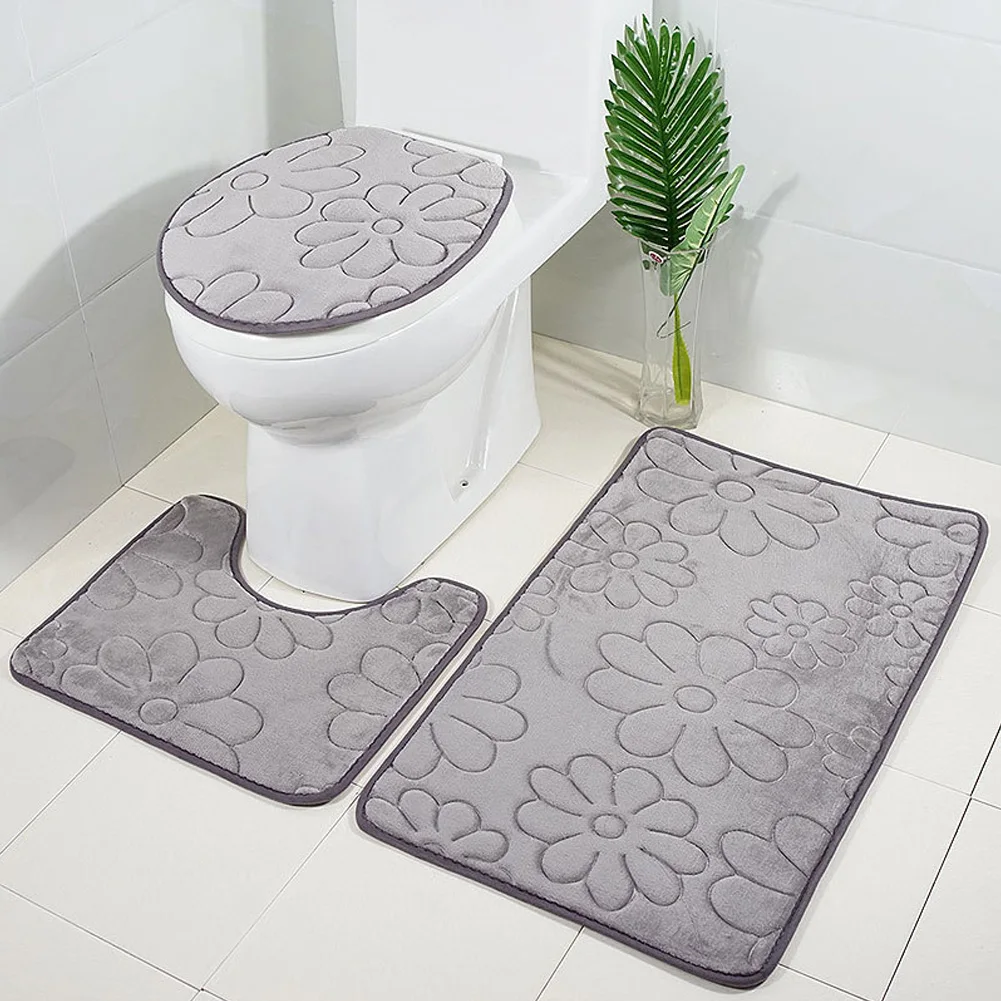 3 шт.компл. набор фланелевых 3D ковриков с прессованным цветком для ванной комнаты, современные коврики с крышкой для унитаза, набор ковриков, набор прямоугольных ковриков для ванной