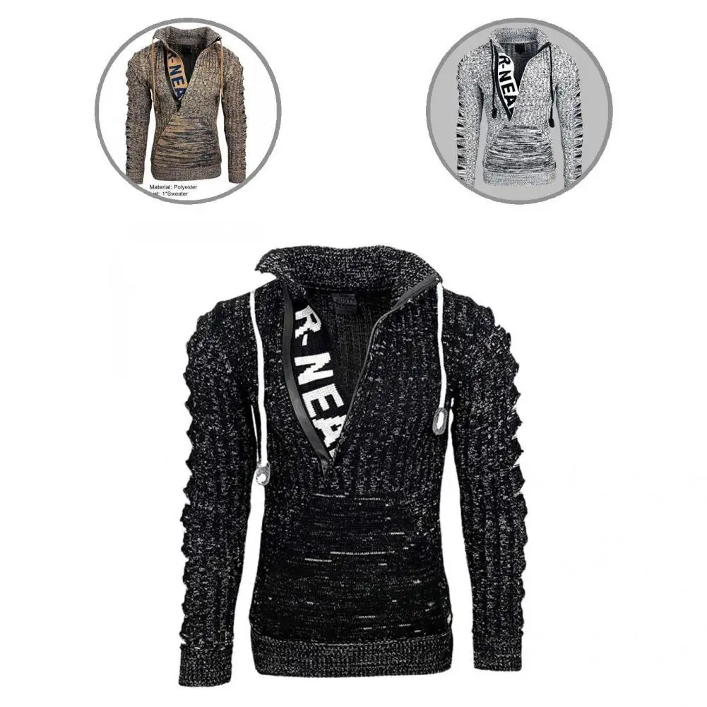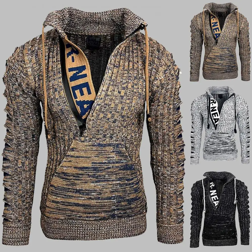 Осень-зима мужской свитер в винтажном стиле, с капюшоном, с застежк...