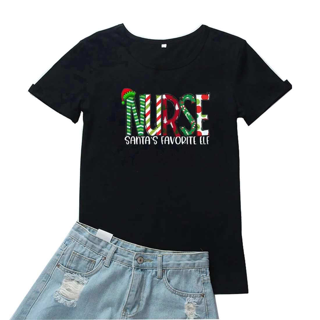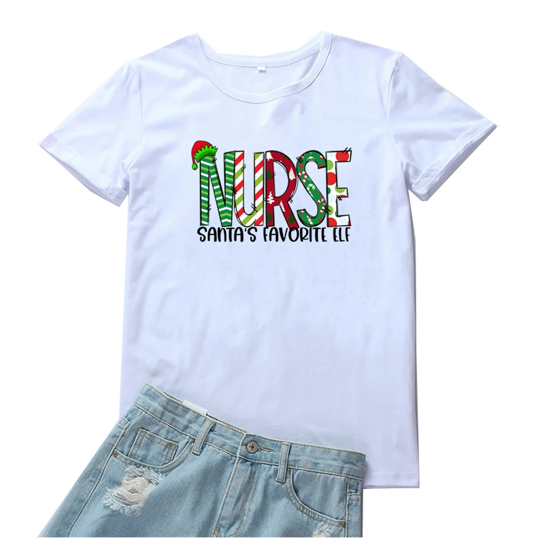 Женская футболка с изображением медсестры Санты и эльфа