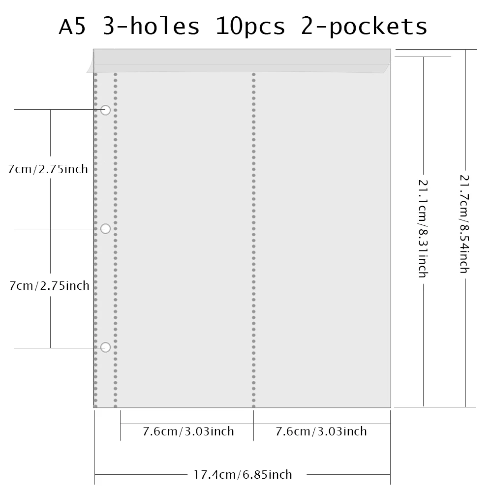 4. [стандартный шаг отверстия]: шаг 3 отверстия A5 7 см/2,75 дюйма, Международный стандартный размер, подходит для стандартного 3-кольцевого переплета A5.