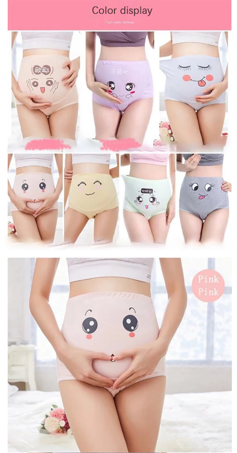 Хлопковые трусы для беременных с завышенной талией, регулируемые трусики для живота с мультяшным принтом, Одежда для беременных женщин, интимное белье для беременных