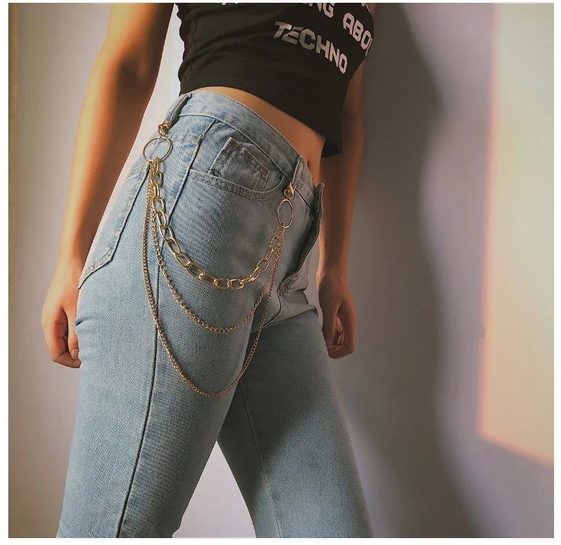 Женский ремень в стиле панк, женский ремень в стиле хип-хоп, брюки с кисточками, Женские Модные металлические цепи для джинсов ND237