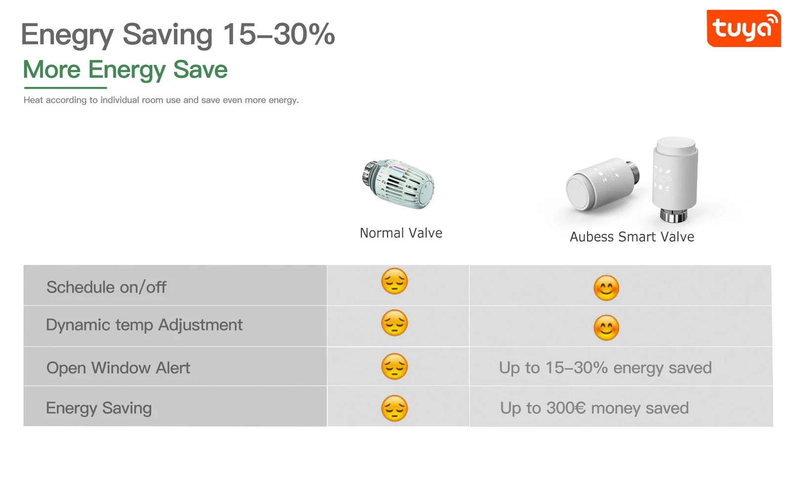 Клапан термостатического радиатора (TRV)-это саморегулирующийся клапан, устанавливаемый на радиатор системы отопления горячей воды, чтобы контролировать температуру комнаты, изменяя поток горячей воды на радиатор. С помощью TRV TV02 вы можете удобно регулировать температуру в помещении от 5 до 30 ℃ и экономить более 15% энергии.
