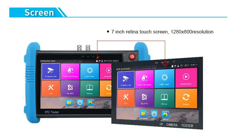 Новинка, тест для IP-камеры, внешний диаметр + 7 дюймов IPC, тест для камеры видеонаблюдения, выключатель питания, сенсорный экран, RJ45 CVBS, Тест камеры, TDR тест 6K H265 +