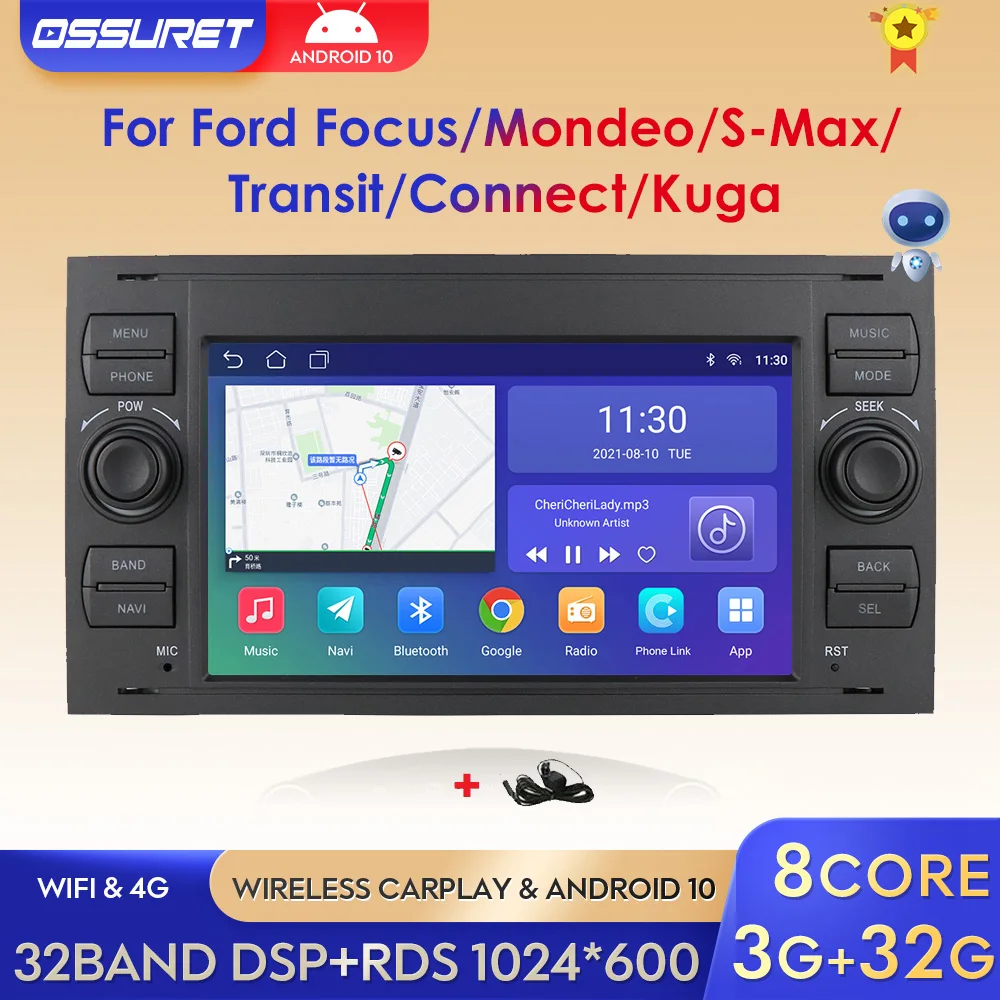 Автомагнитола 2 DIN, 3 + 32 ГБ, Android 10, для Ford Mondeo S-max, ...