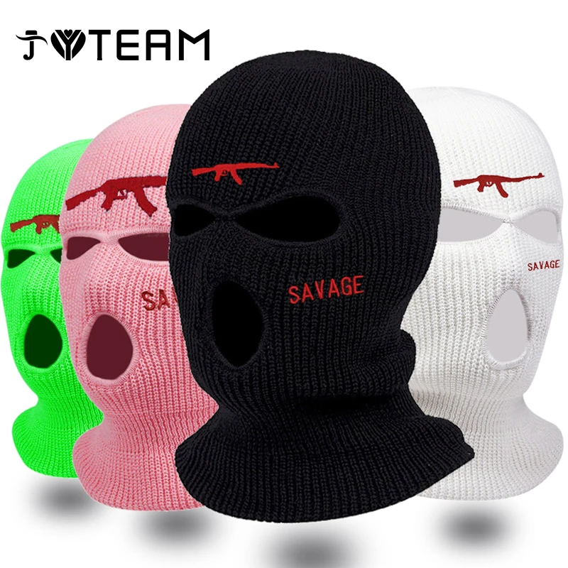 Новинка 2022, вязаная Лыжная маска AK47 на все лицо с вышивкой и 3 отверстиями, теплая зимняя велосипедная Балаклава для взрослых, подарок для занятий спортом на открытом воздухе