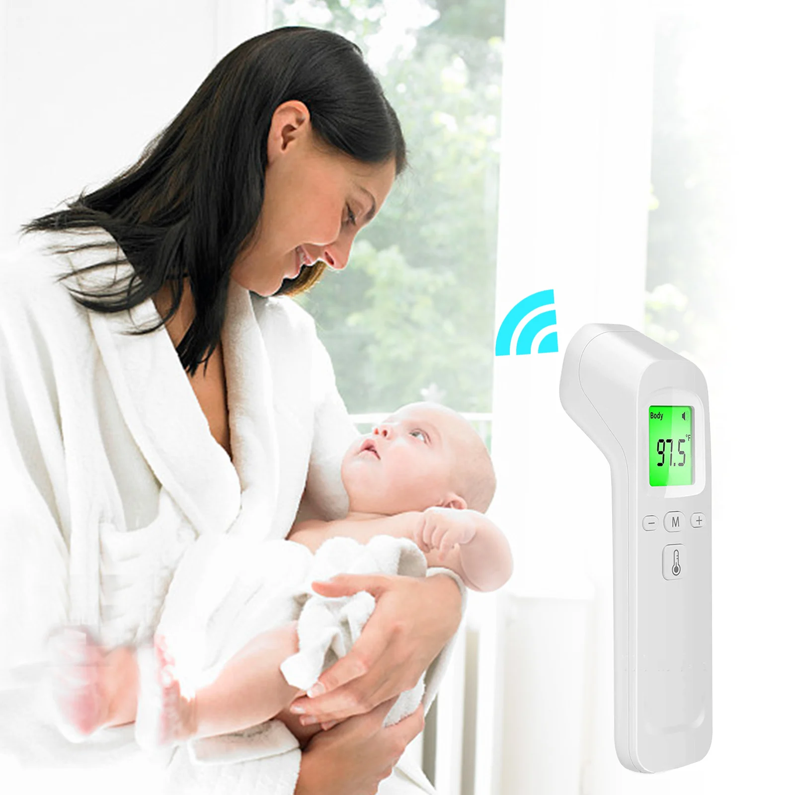 Направляйтесь на лоб (3-5 см), нажмите кнопку измерения, и ЖК-дисплей покажет измеренную температуру.