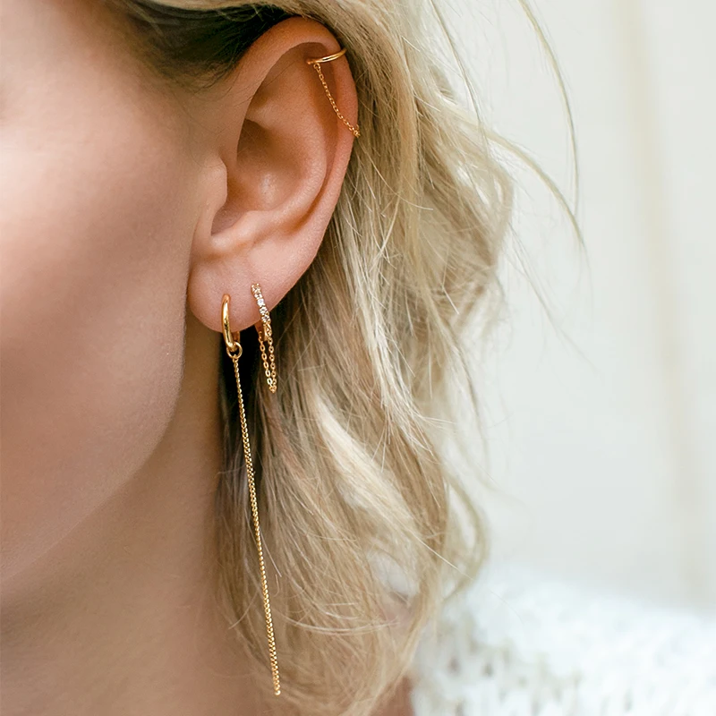 Женские серьги-гвоздики с длинной цепочкой, из серебра 925 пробы