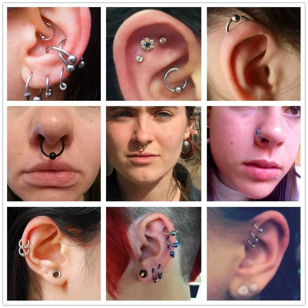 Кольцо из хирургической стали для пирсинга, смешанные цвета, обруч для ушей, носа, козелка уха, хрящевой ткани тела, 5 шт.лот