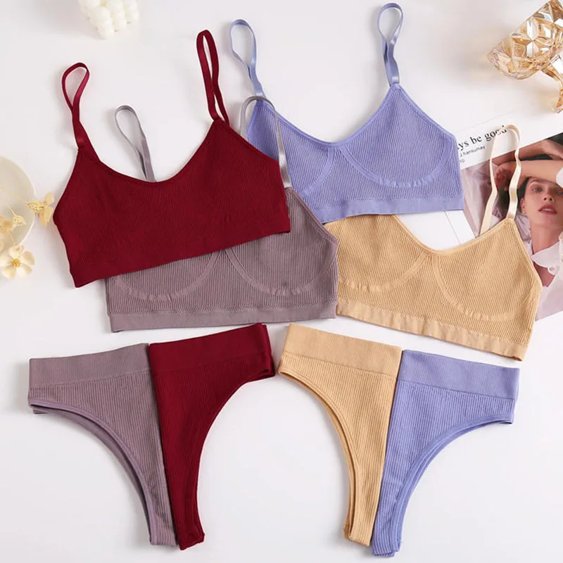 Комплект женского нижнего белья, бесшовный топ и трусики-стринги