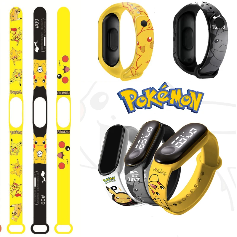 Ремешок для часов Pokemon Pikachu, подходит для Xiaomi, светодиодный браслет 34, браслет, индивидуальный модный подарок для детей на Рождество