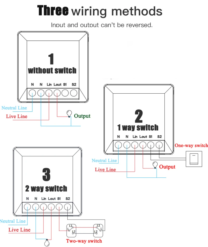 Его также можно подключить за переключателем для поддержки одного переключателя управления и двойного переключателя управления. Он может быть непосредственно установлен в коробке переключателя к модулю переключателя. Он также может быть установлен на двойном переключателе управления, не влияя на использование двойного переключателя управления.