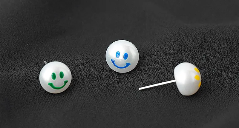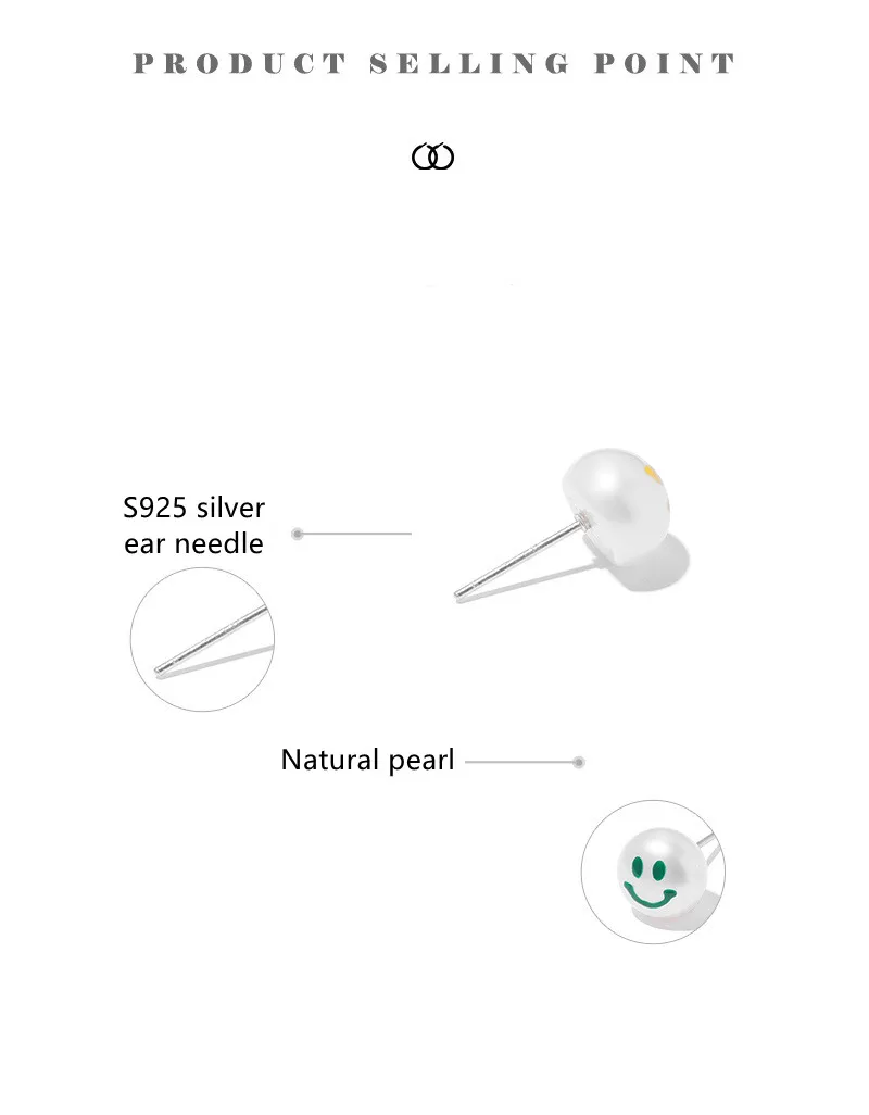 Красивые женские серьги-гвоздики с натуральным жемчугом в стиле барокко, серебро 925 пробы, корейские милые Креативные милые женские серьги со смайликом